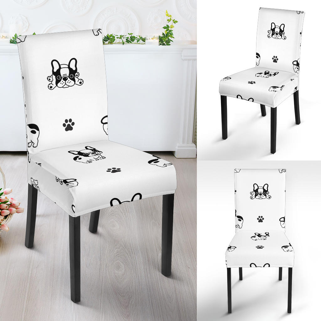 Cute French Bulldog Paw Pattern Dining Chair Slipcover