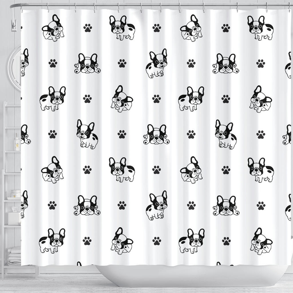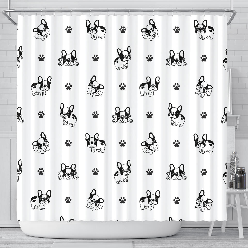 Cute French Bulldog Paw Pattern Shower Curtain Fulfilled In US