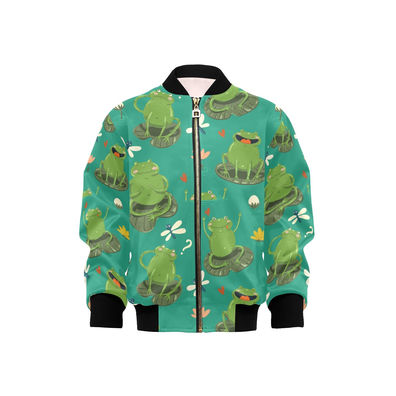 Cute frog dragonfly design pattern Kids' Boys' Girls' Bomber Jacket
