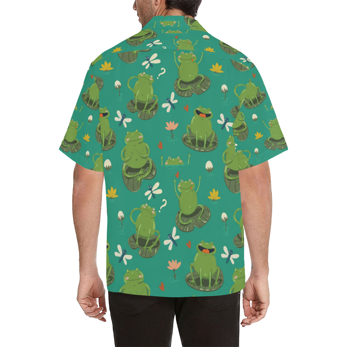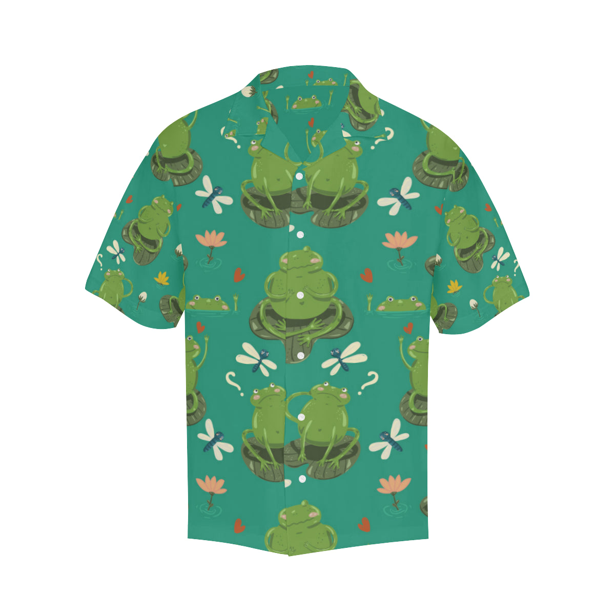 Cute frog dragonfly design pattern Men's All Over Print Hawaiian Shirt is a uniqued design and limited item. It made to order, hand printed, and sewn with love in our factory.