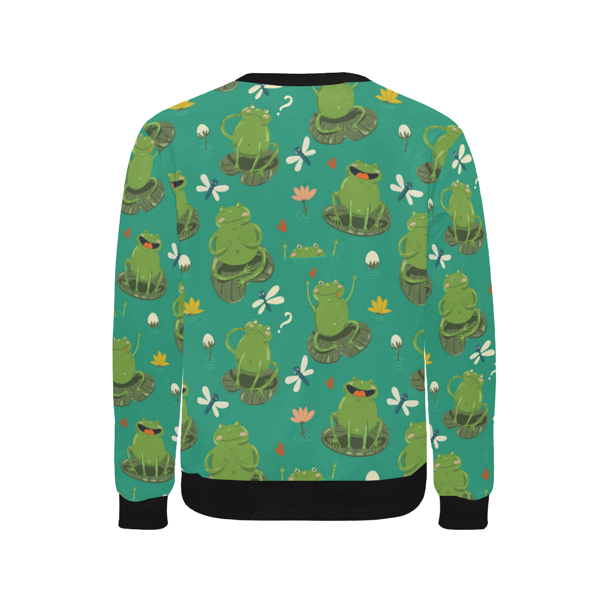 Cute frog dragonfly design pattern Men's Crew Neck Sweatshirt is a uniqued design and limited item. It made to order, hand printed, and sewn with love in our factory.