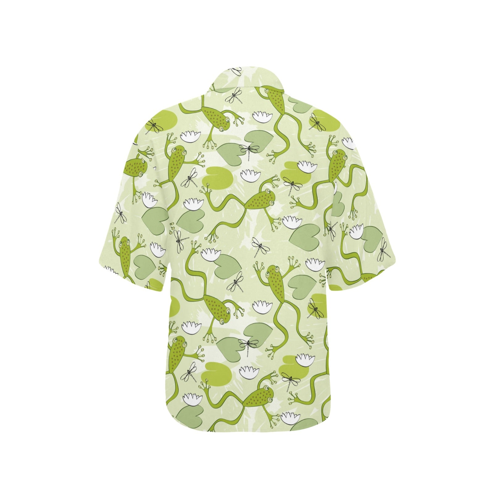 Cute frog dragonfly pattern Women's All Over Print Hawaiian Shirt