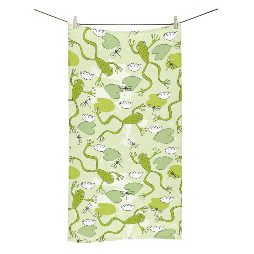 Cute frog dragonfly pattern Bath Towel 30"x56" is a uniqued design and limited item. It made to order, hand printed, and sewn with love in our factory.