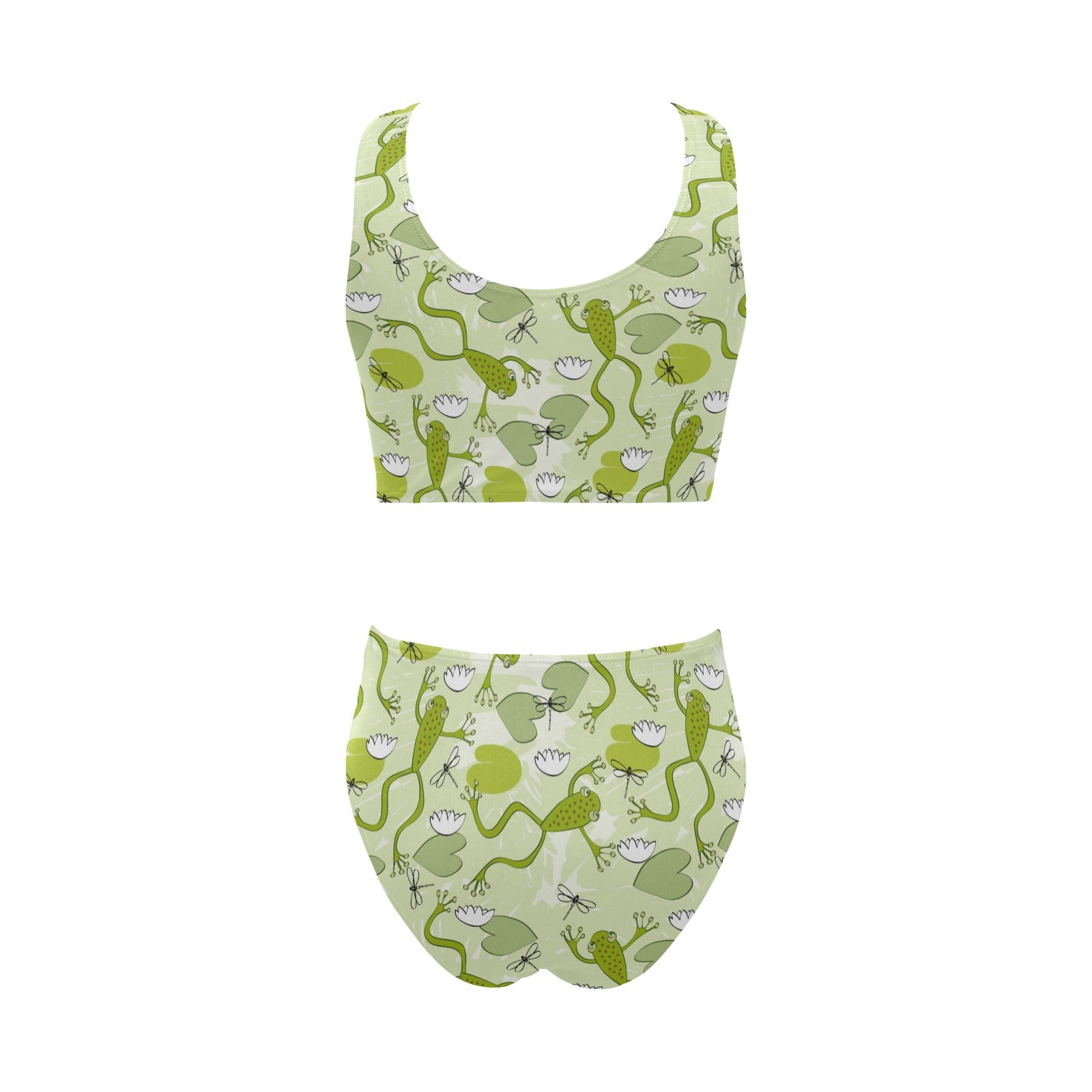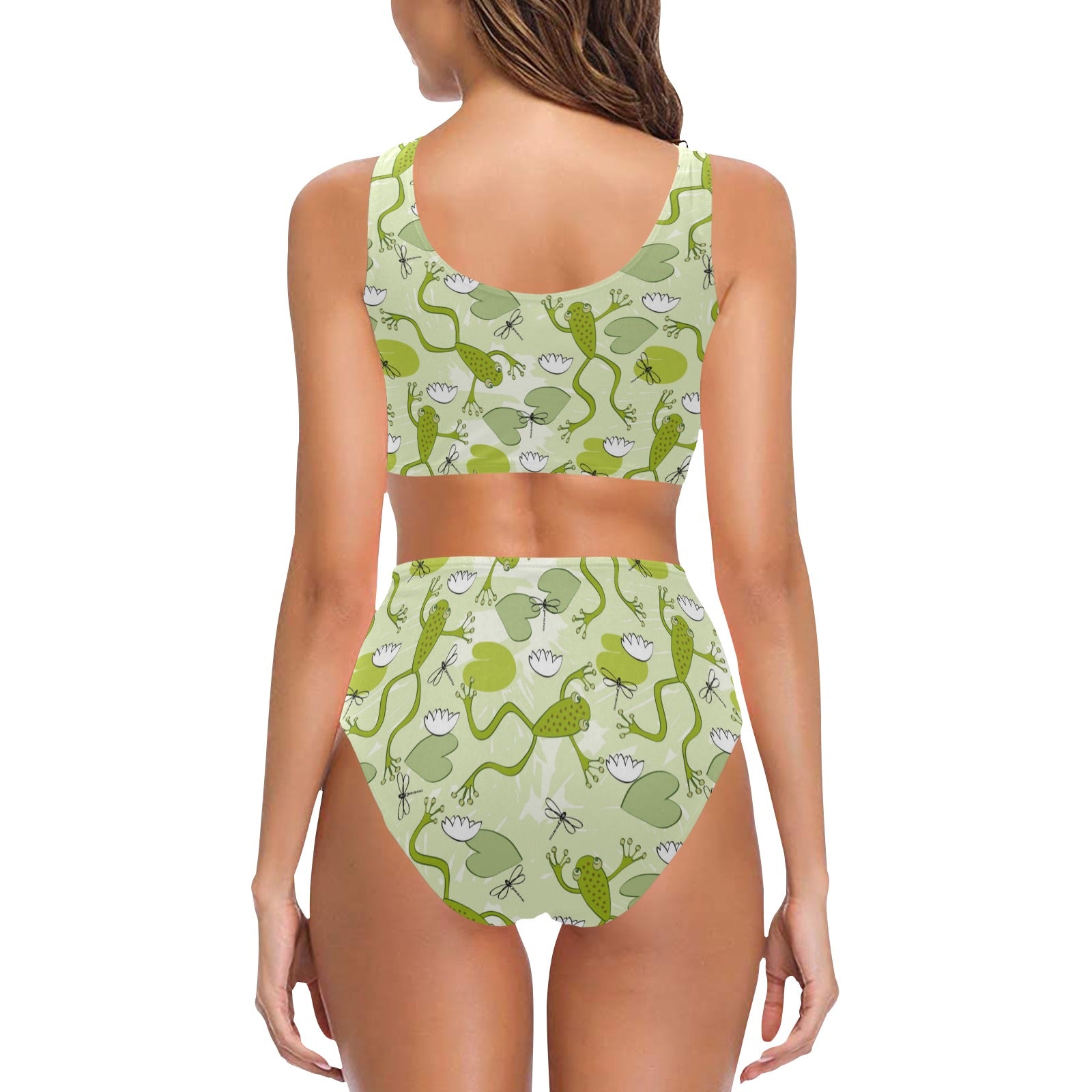 Cute frog dragonfly pattern Chest Bowknot High Waisted Bikini Swimsuit