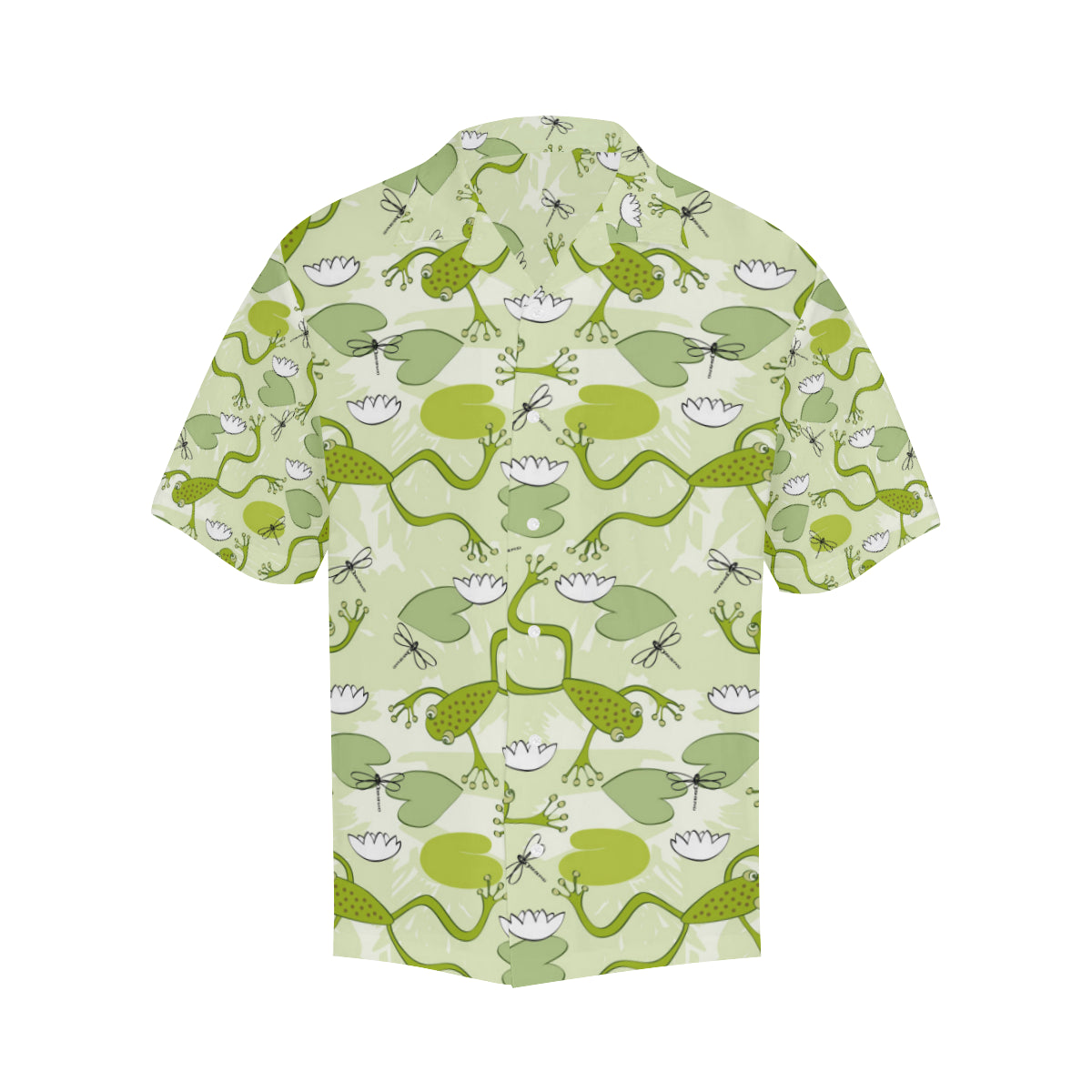 Cute frog dragonfly pattern Men's All Over Print Hawaiian Shirt is a uniqued design and limited item. It made to order, hand printed, and sewn with love in our factory.
