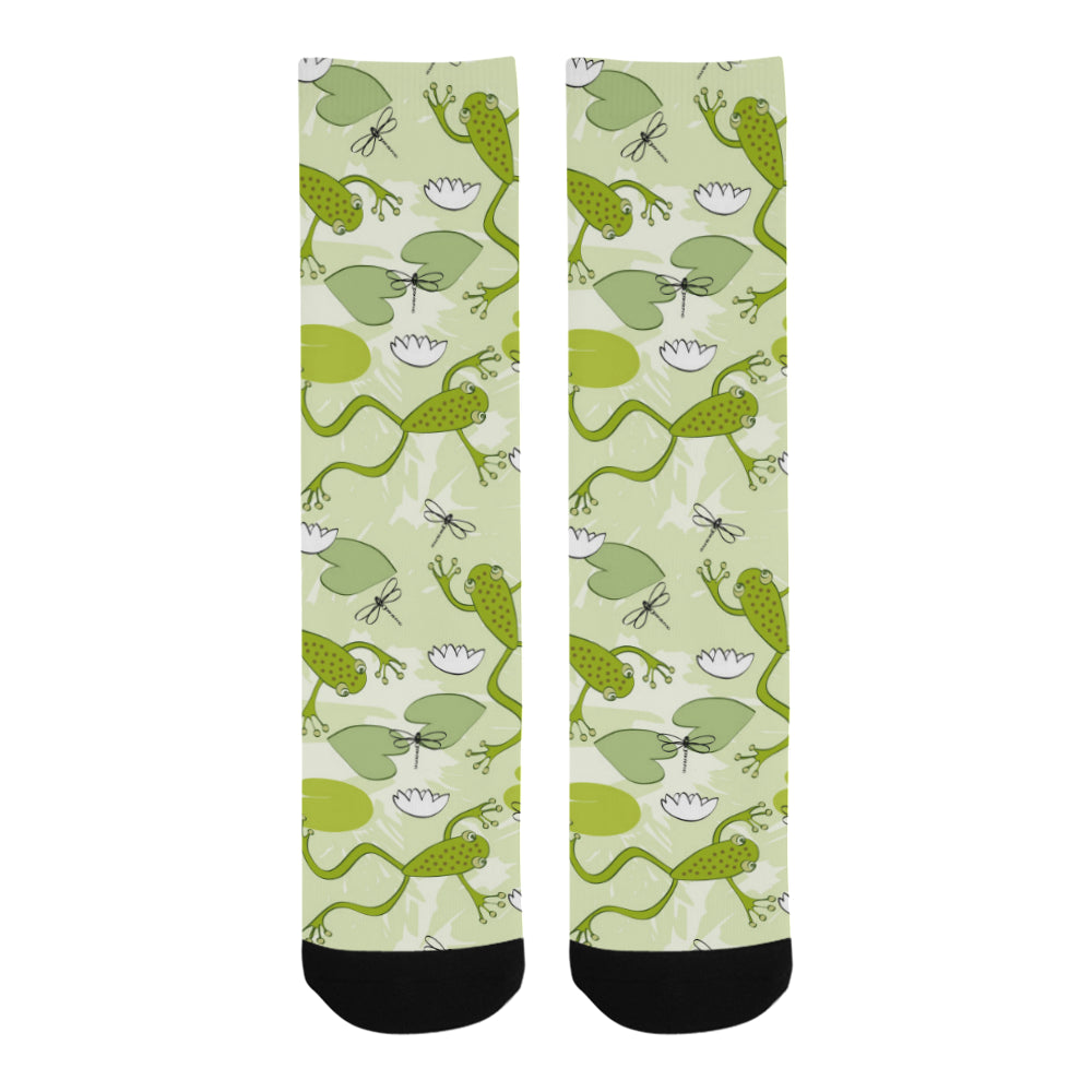 Cute frog dragonfly pattern Crew Socks are uniqued design and limited item. It made to order, hand printed, and sewn with love in our factory.