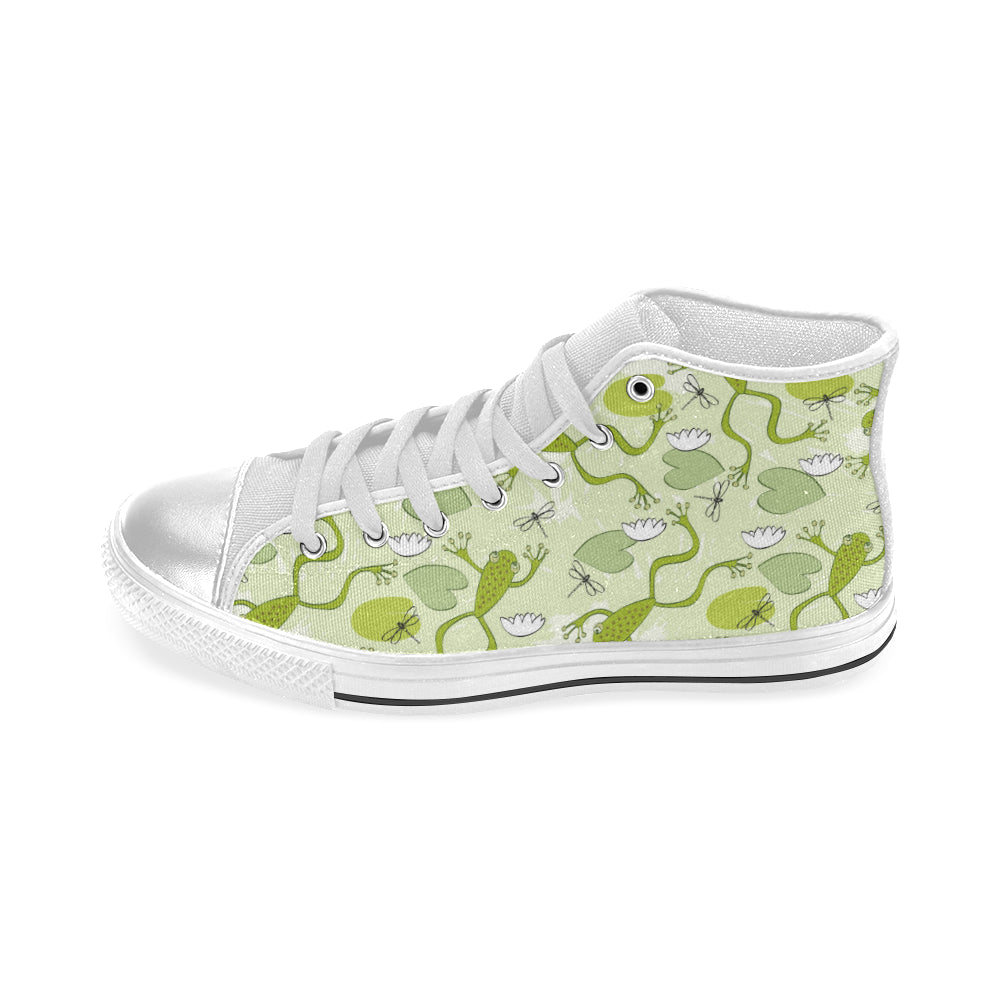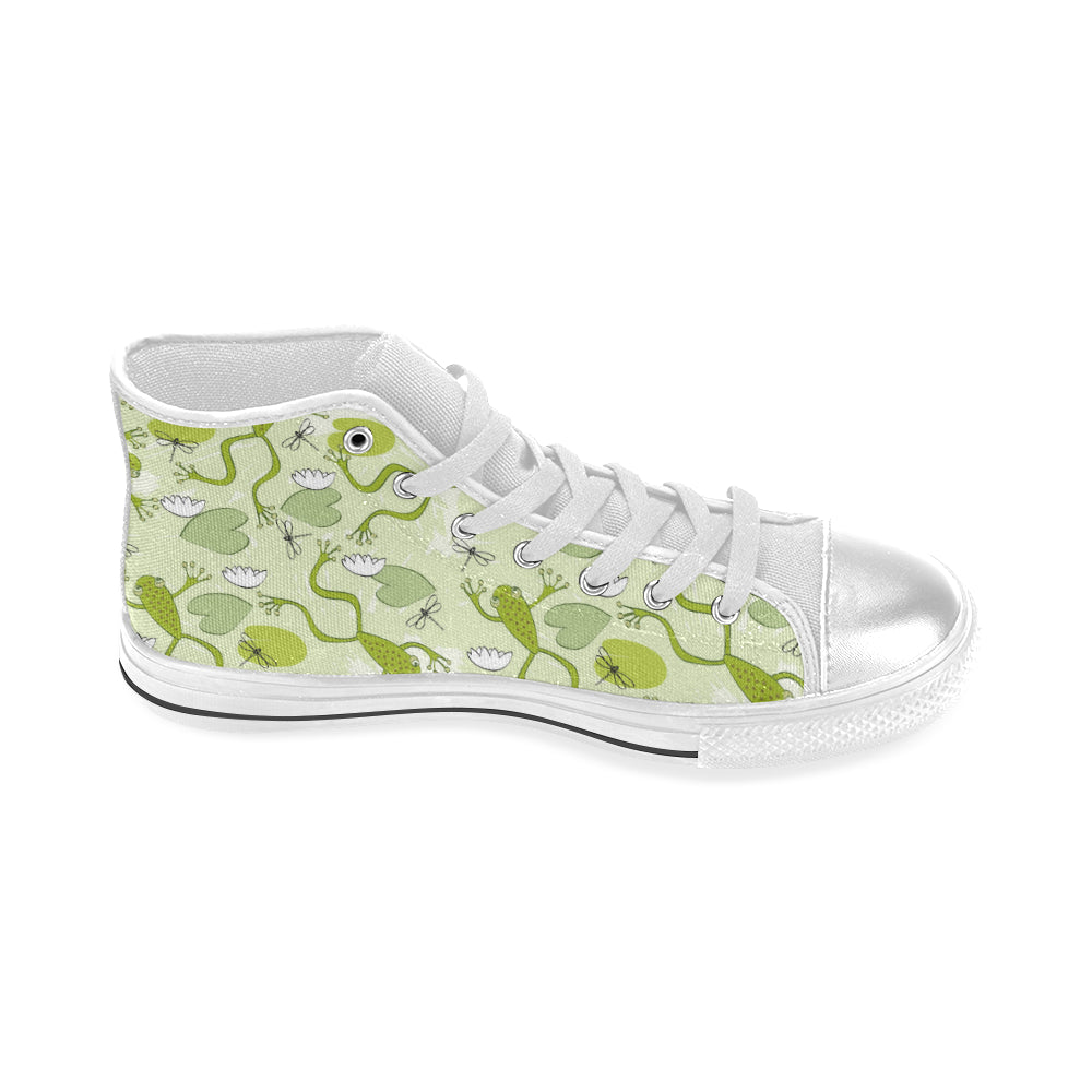 Cute frog dragonfly pattern Women's High Top Canvas Shoes White