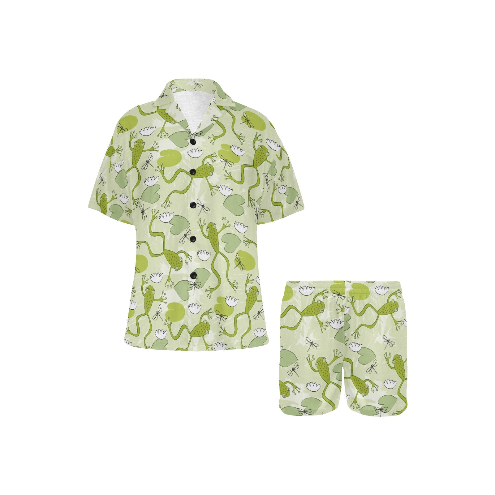 Cute frog dragonfly pattern Women's V-Neck Short Pajama Set