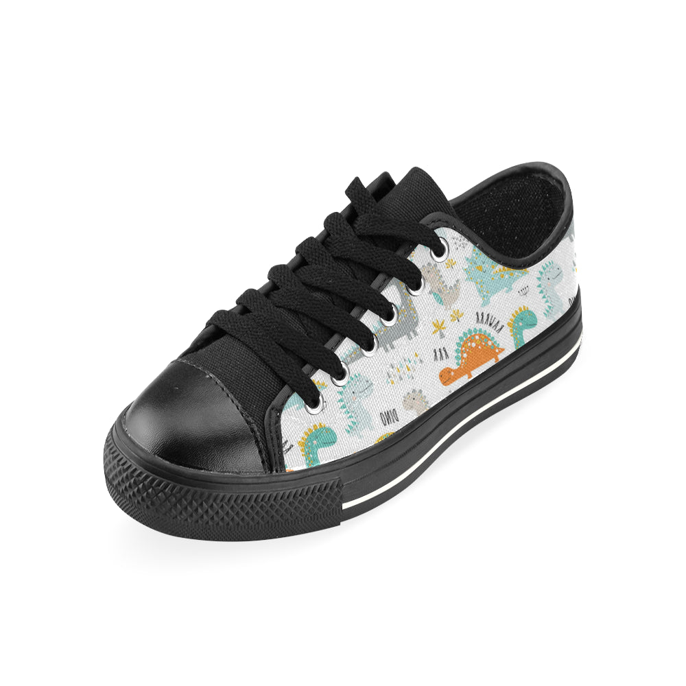 Cute funny kids dinosaurs pattern Men's Low Top Canvas Shoes Black