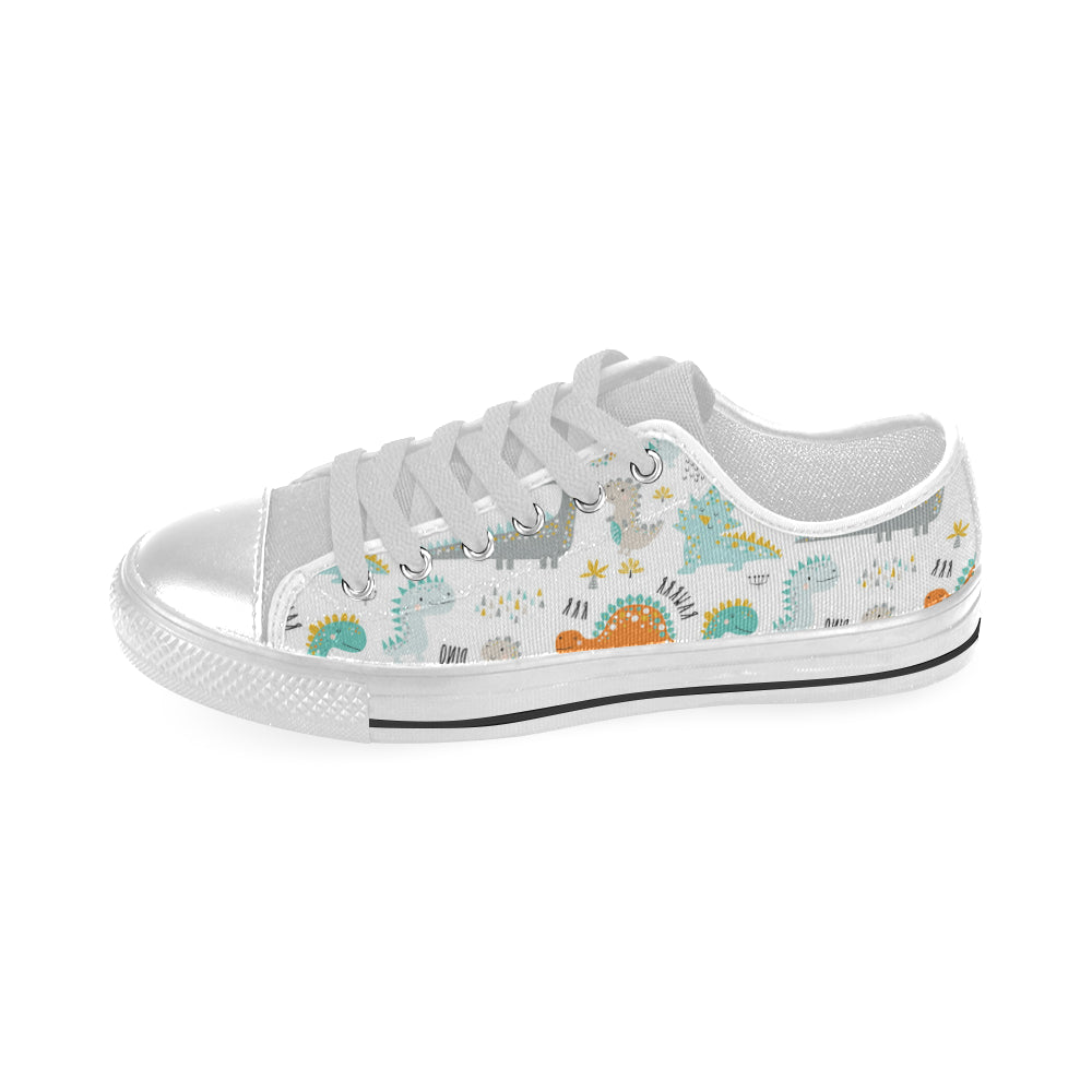 Cute funny kids dinosaurs pattern Men's Low Top Canvas Shoes White