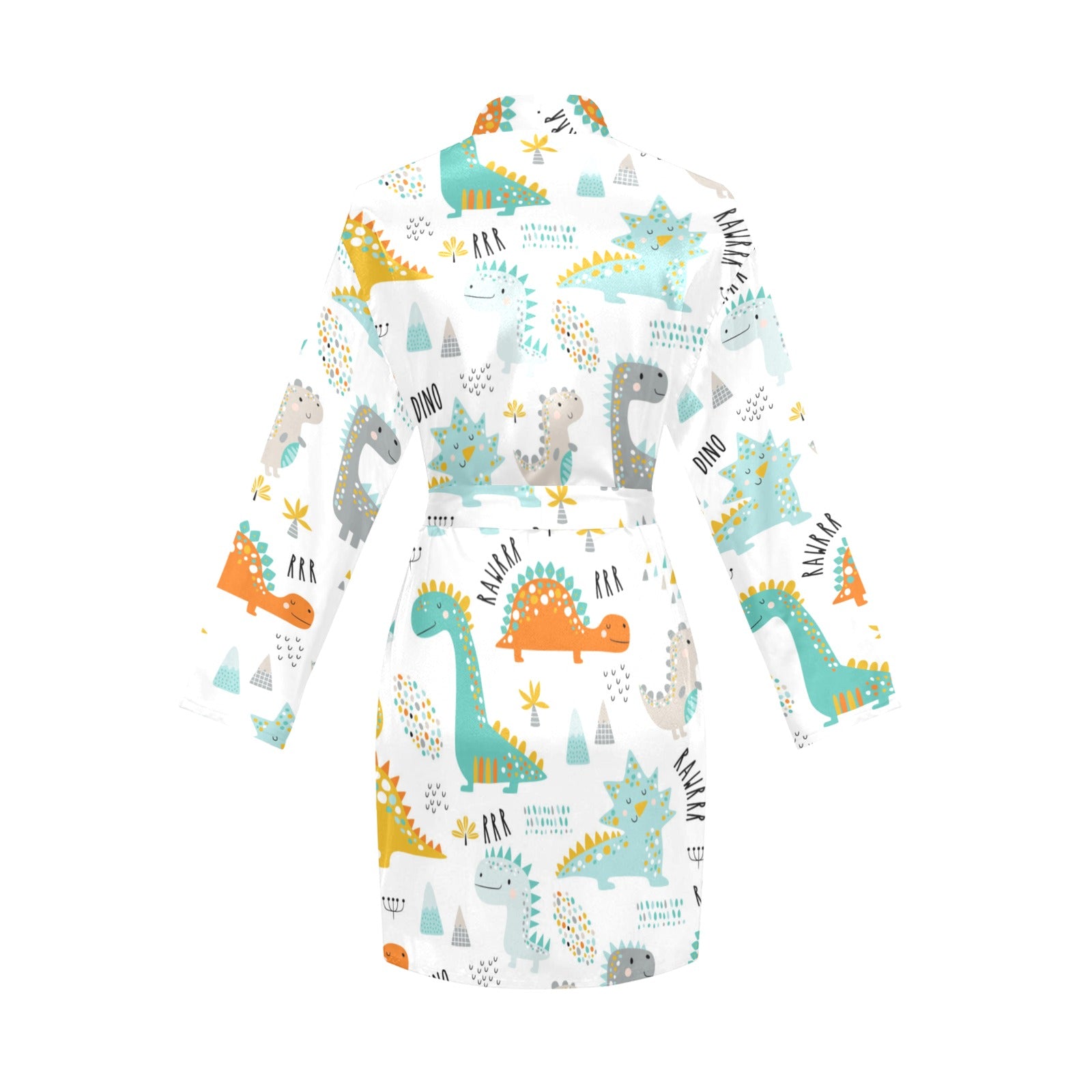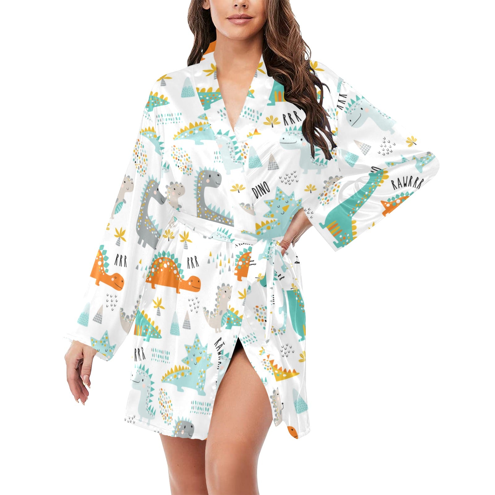 Cute funny kids dinosaurs pattern Women's Long Sleeve Belted Night Robe