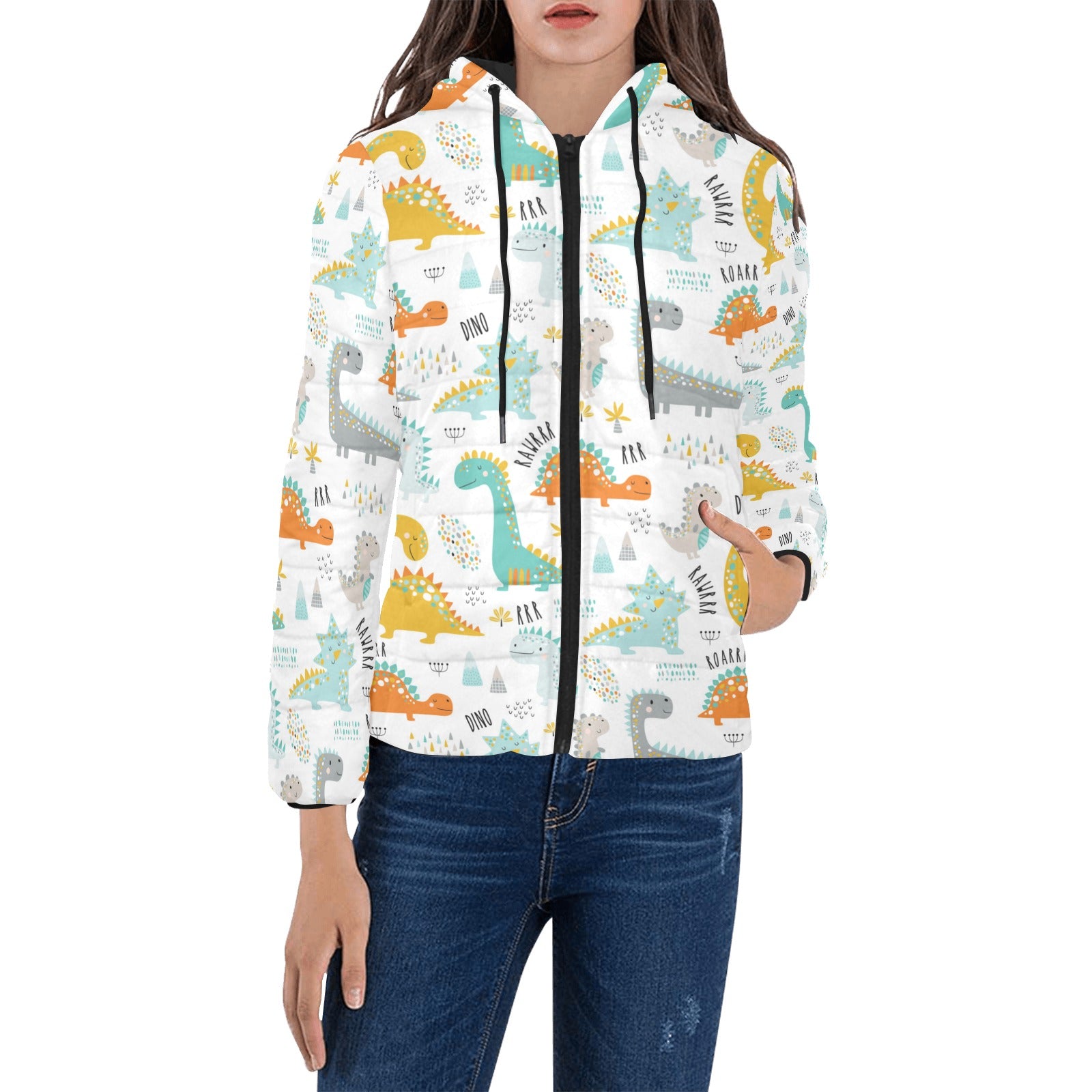 Cute funny kids dinosaurs pattern Women's Padded Hooded Jacket