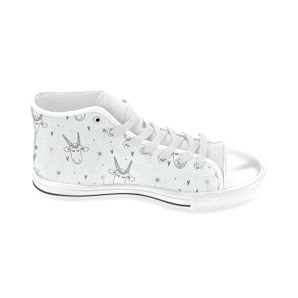 Cute goat design pattern Men's High Top Canvas Shoes White