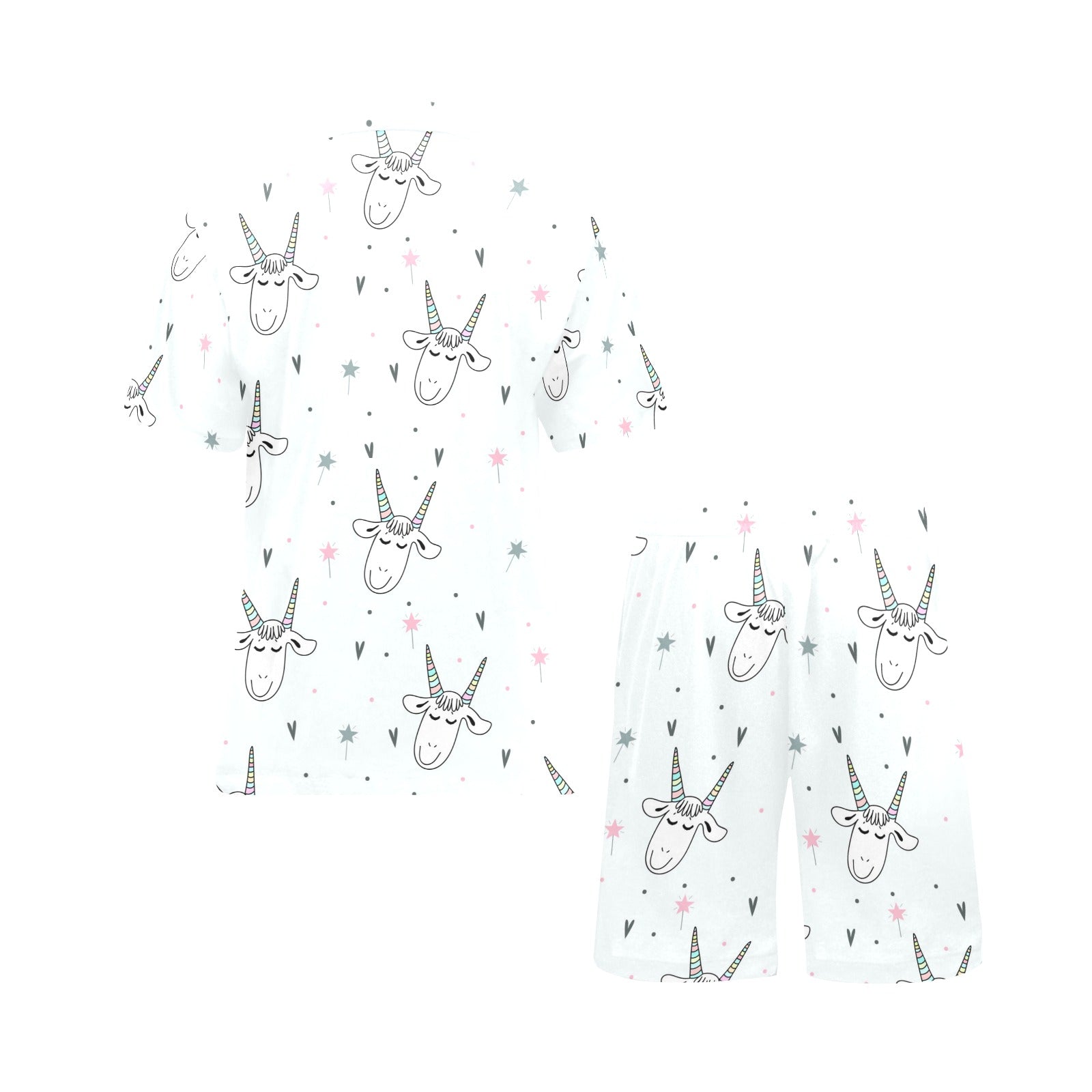 Cute goat design pattern Men's V-Neck Short Pajama Set