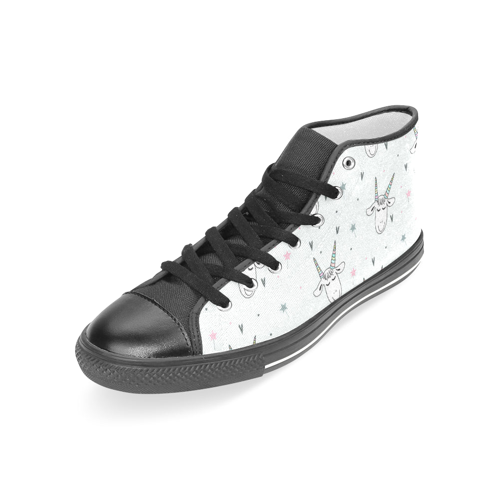 Cute goat design pattern Women's High Top Canvas Shoes Black