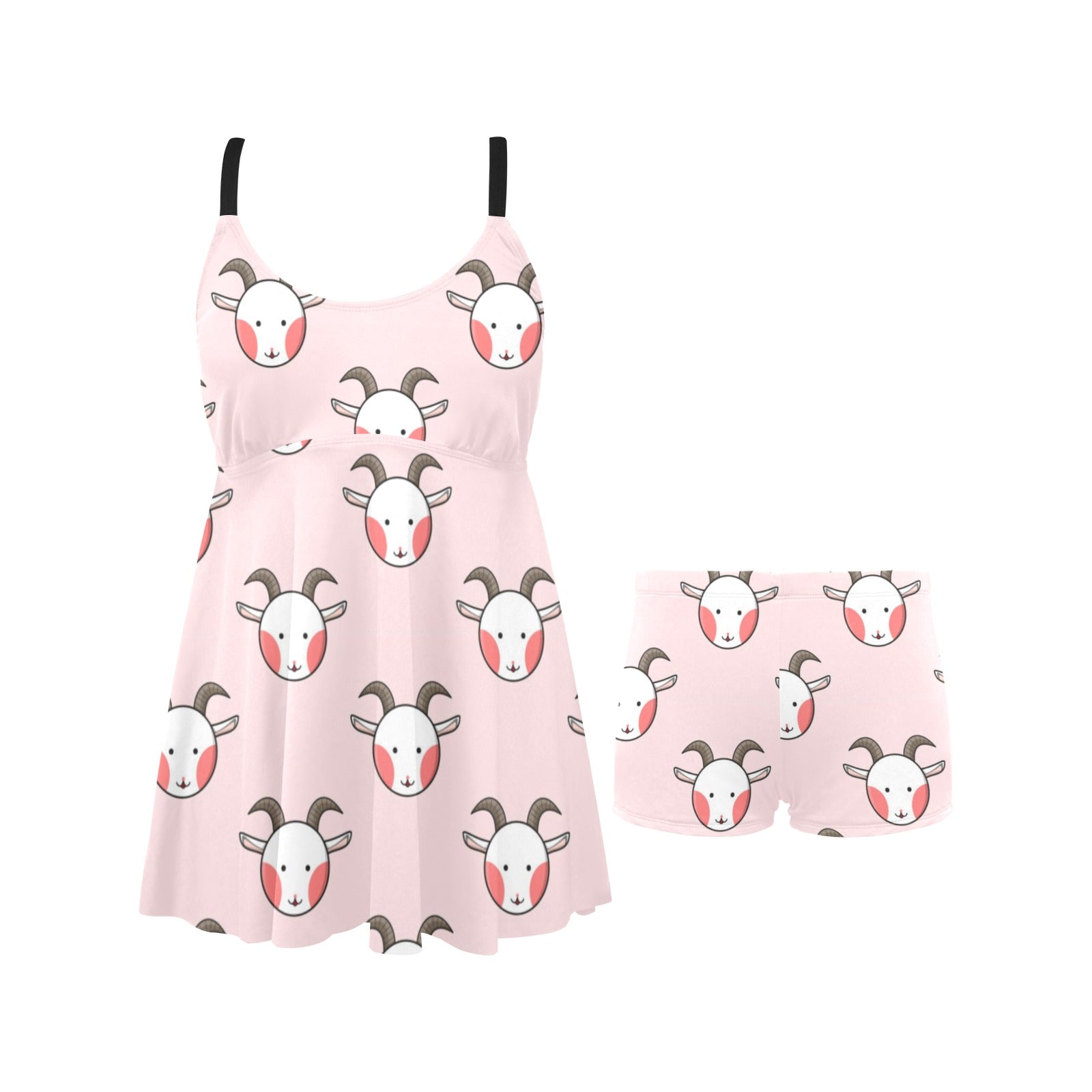Cute goat pattern Chest Sexy Pleated Two Piece Swim Dress