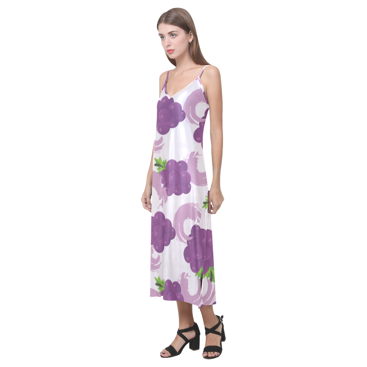 Cute Grape pattern V-Neck Open Fork Long Dress is a uniqued design and limited item. It made to order, hand printed, and sewn with love in our factory.