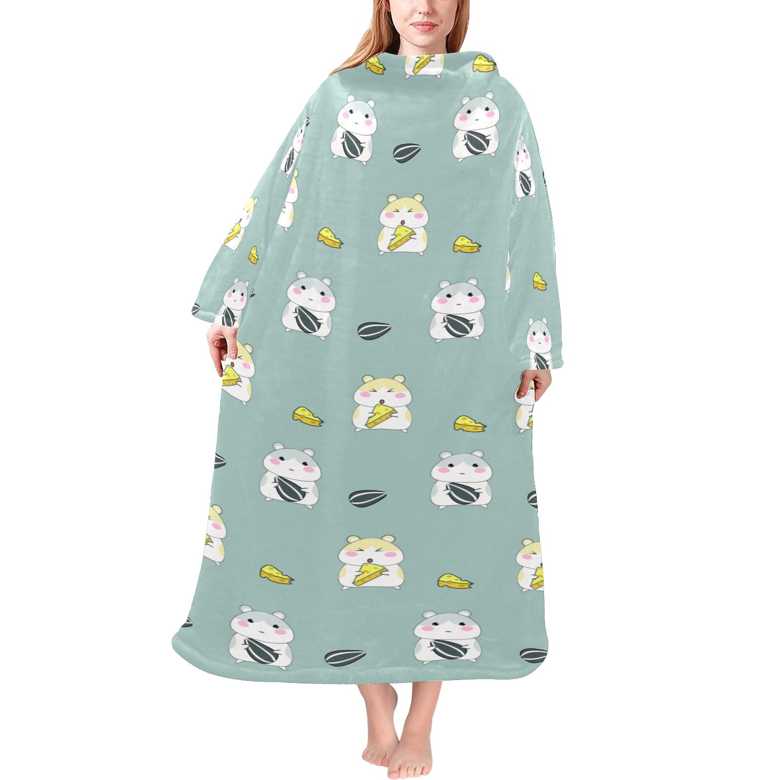 Cute hamster cheese pattern Blanket Robe with Sleeves