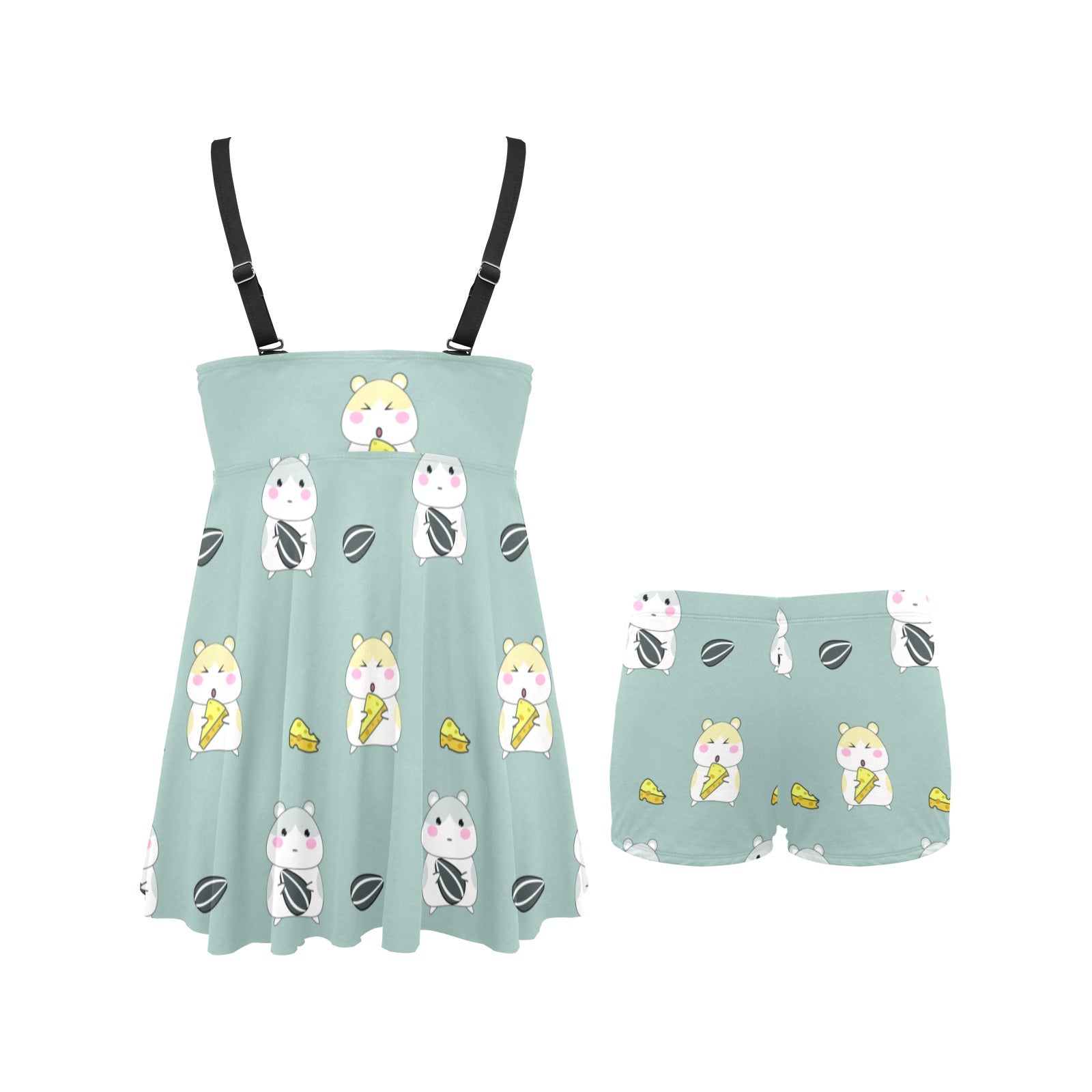 Cute hamster cheese pattern Chest Sexy Pleated Two Piece Swim Dress