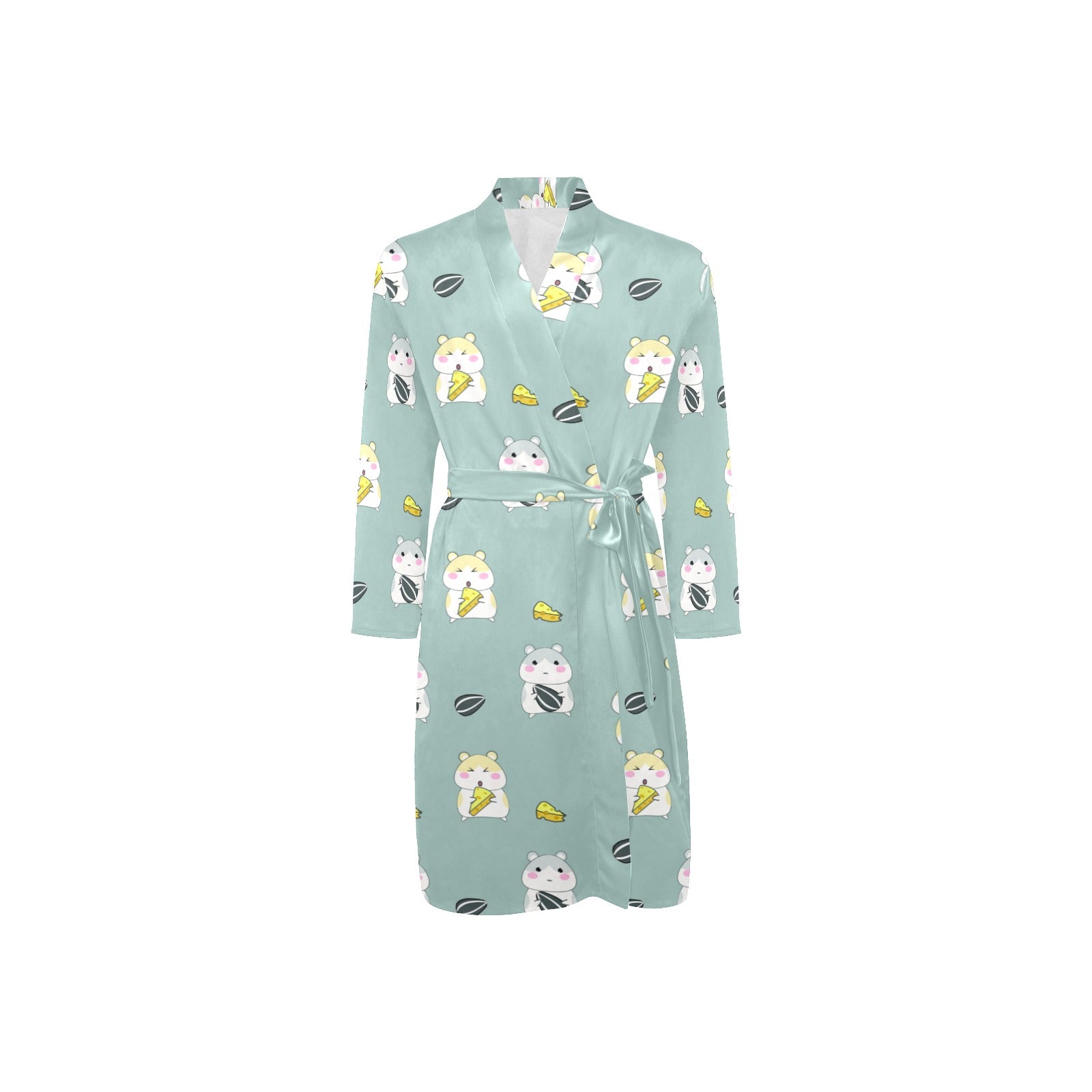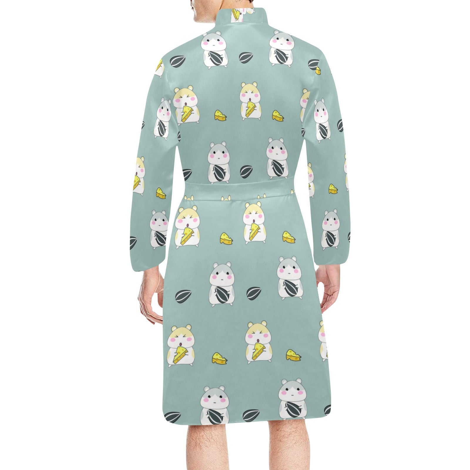 Cute hamster cheese pattern Men's Long Sleeve Belted Night Robe
