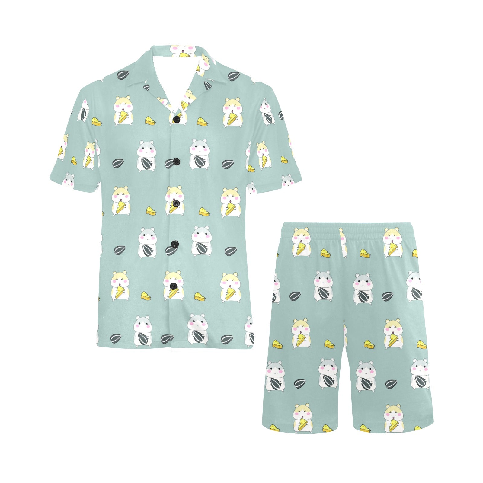 Cute hamster cheese pattern Men's V-Neck Short Pajama Set