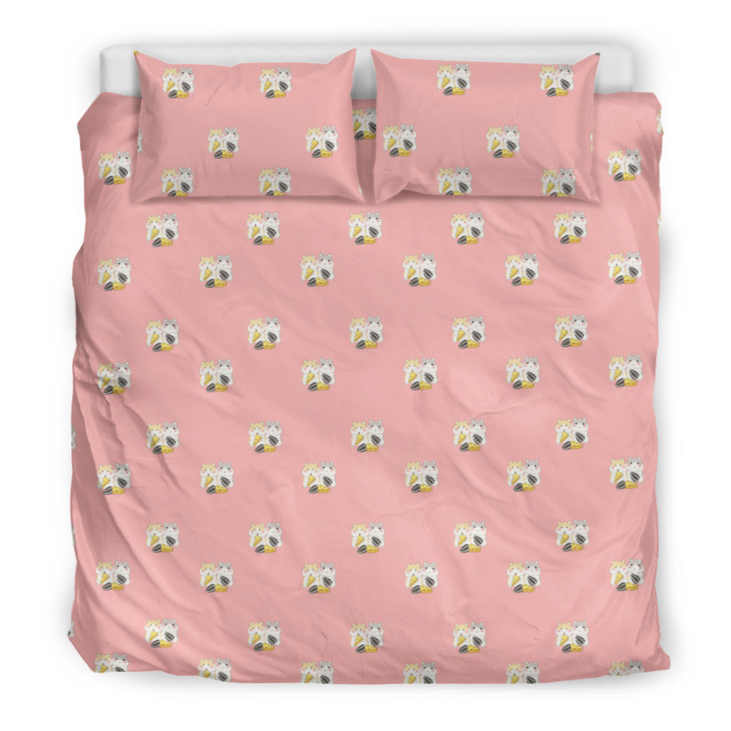 Cute hamster cheese pattern pink background Bedding Set is a uniqued design and limited item. It made to order, hand printed, and sewn with love in our factory.