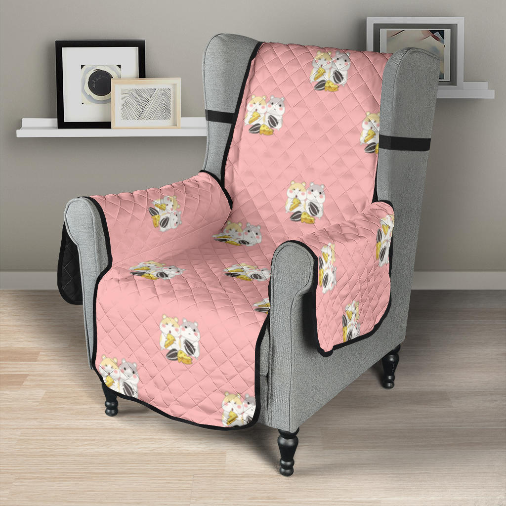 Cute hamster cheese pattern pink background Chair Cover Protector