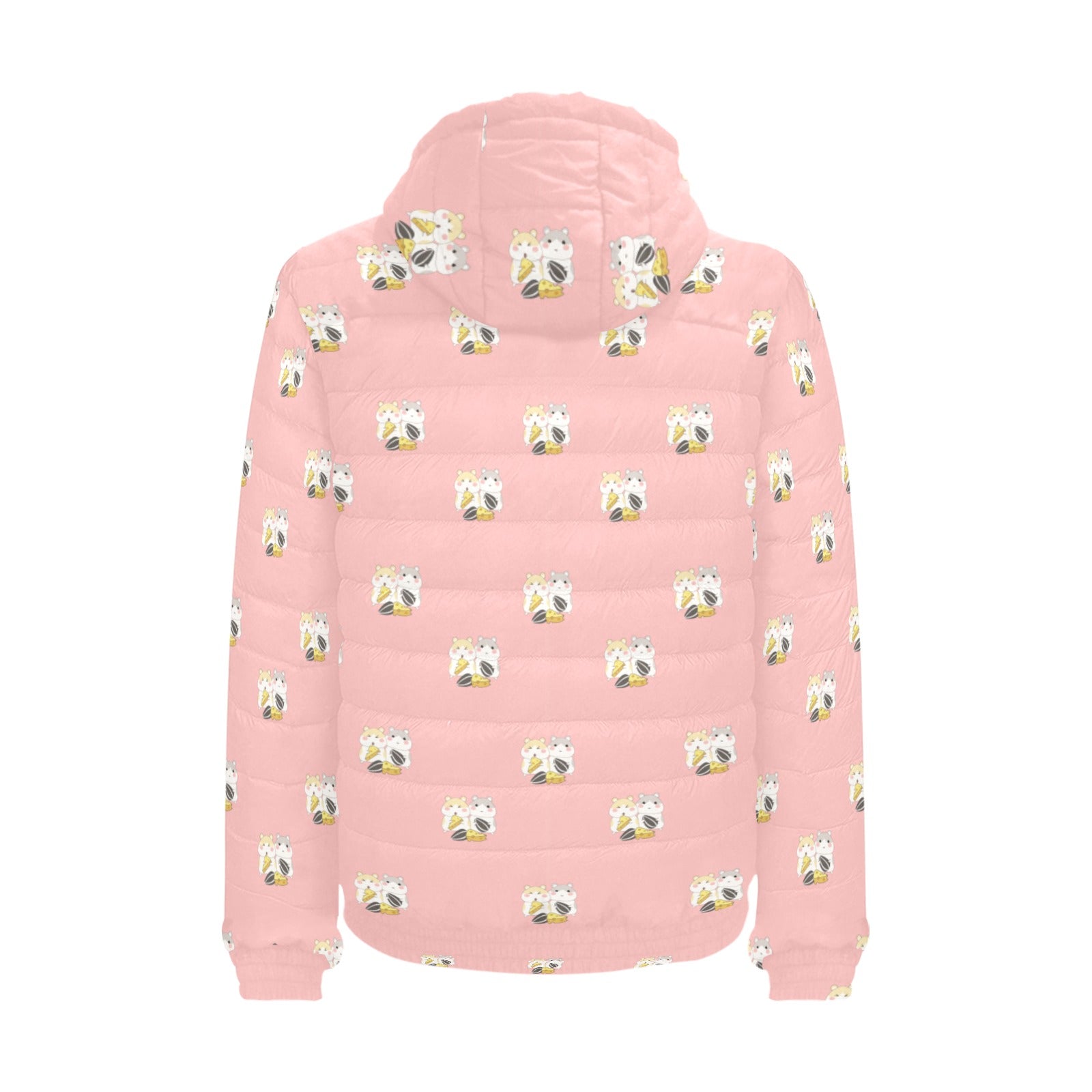 Cute hamster cheese pattern pink background Men's Padded Hooded Jacket