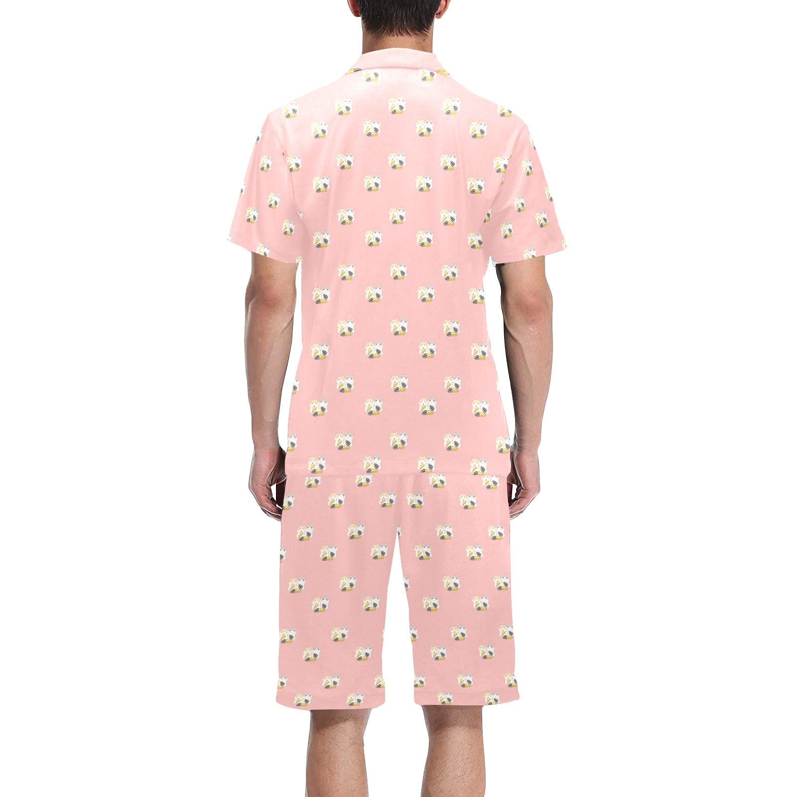 Cute hamster cheese pattern pink background Men's V-Neck Short Pajama Set