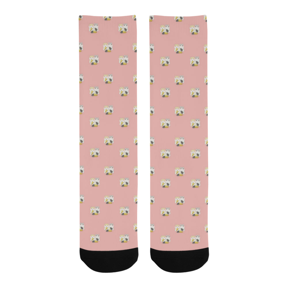 Cute hamster cheese pattern pink background Crew Socks are uniqued design and limited item. It made to order, hand printed, and sewn with love in our factory.
