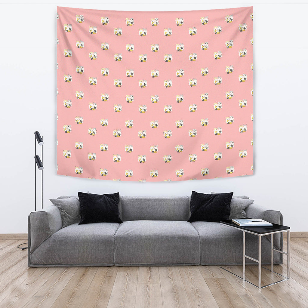 Cute Hamster Cheese Pattern Pink Background Wall Tapestry
