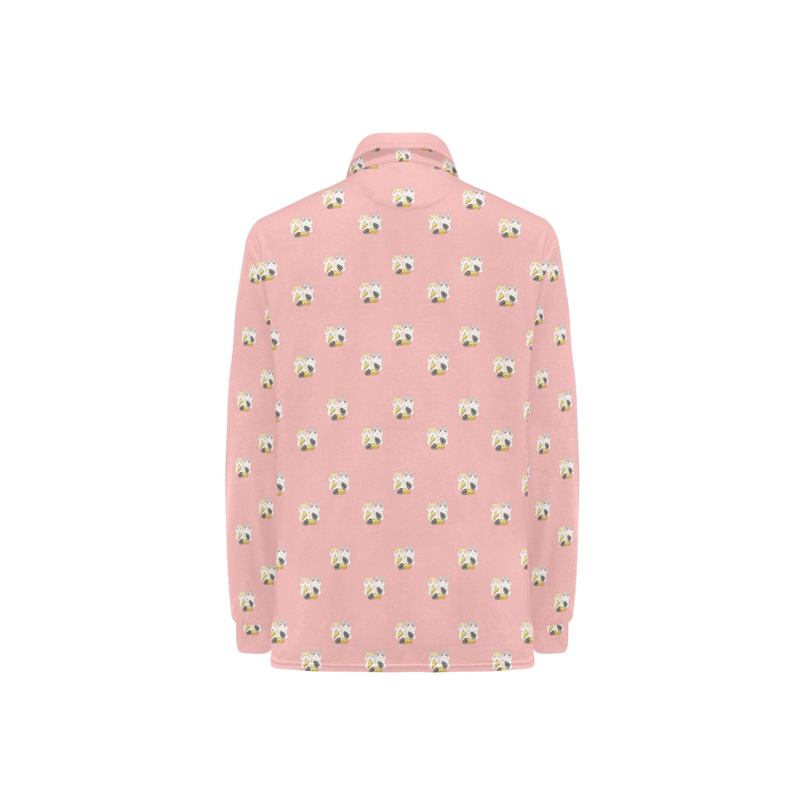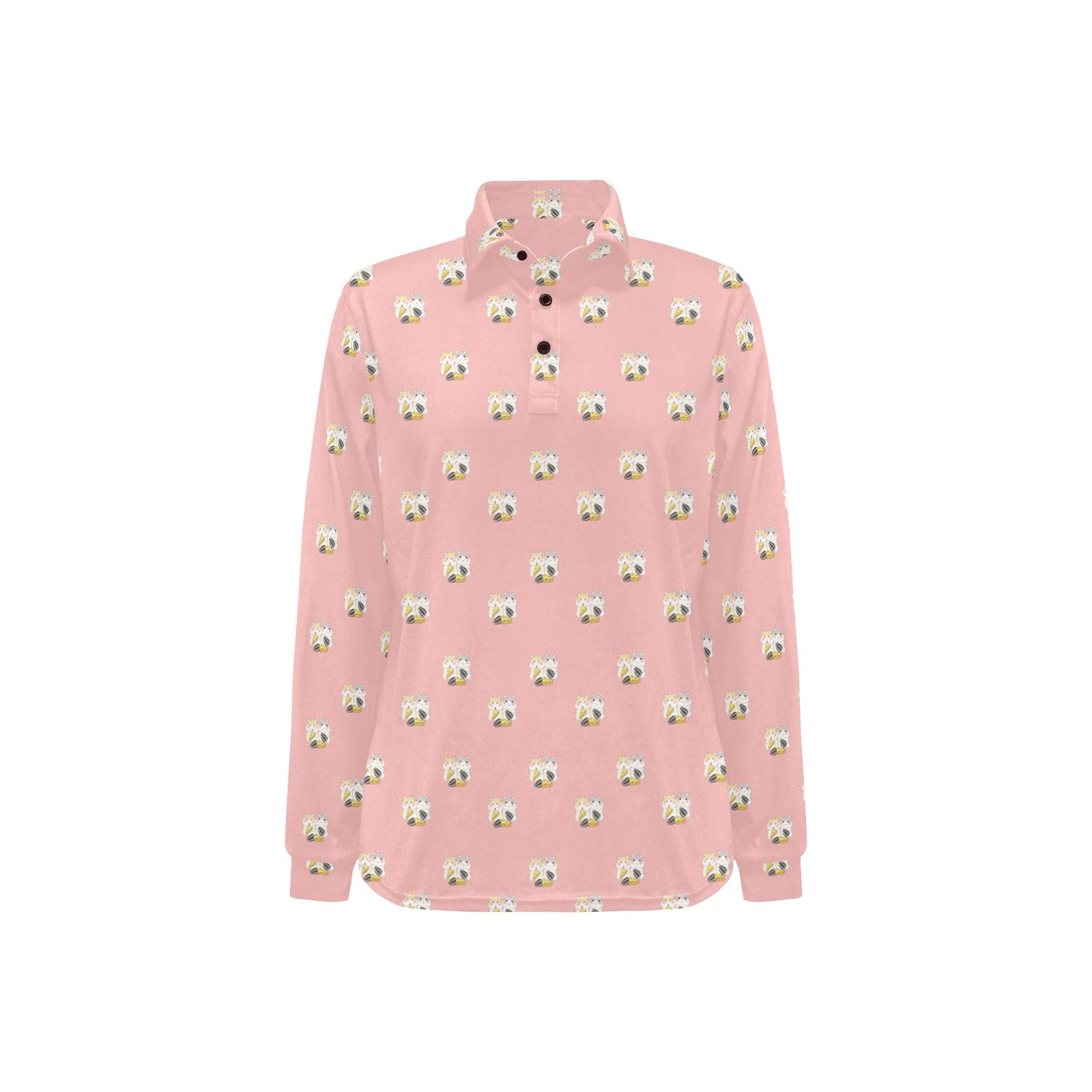 Cute hamster cheese pattern pink background Women's Long Sleeve Polo Shirt