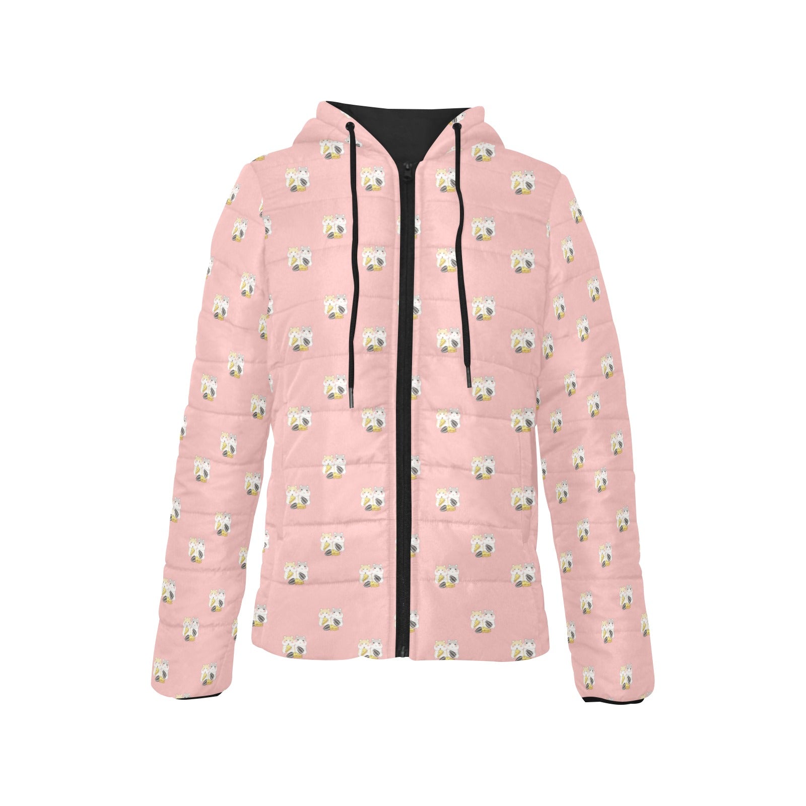 Cute hamster cheese pattern pink background Women's Padded Hooded Jacket