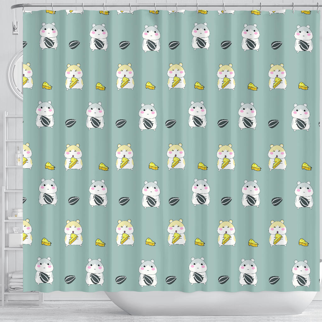 Cute hamster cheese pattern Shower Curtain is a uniqued design and limited item. It made to order, hand printed, and sewn with love in our factory.