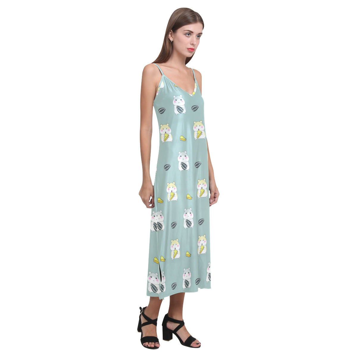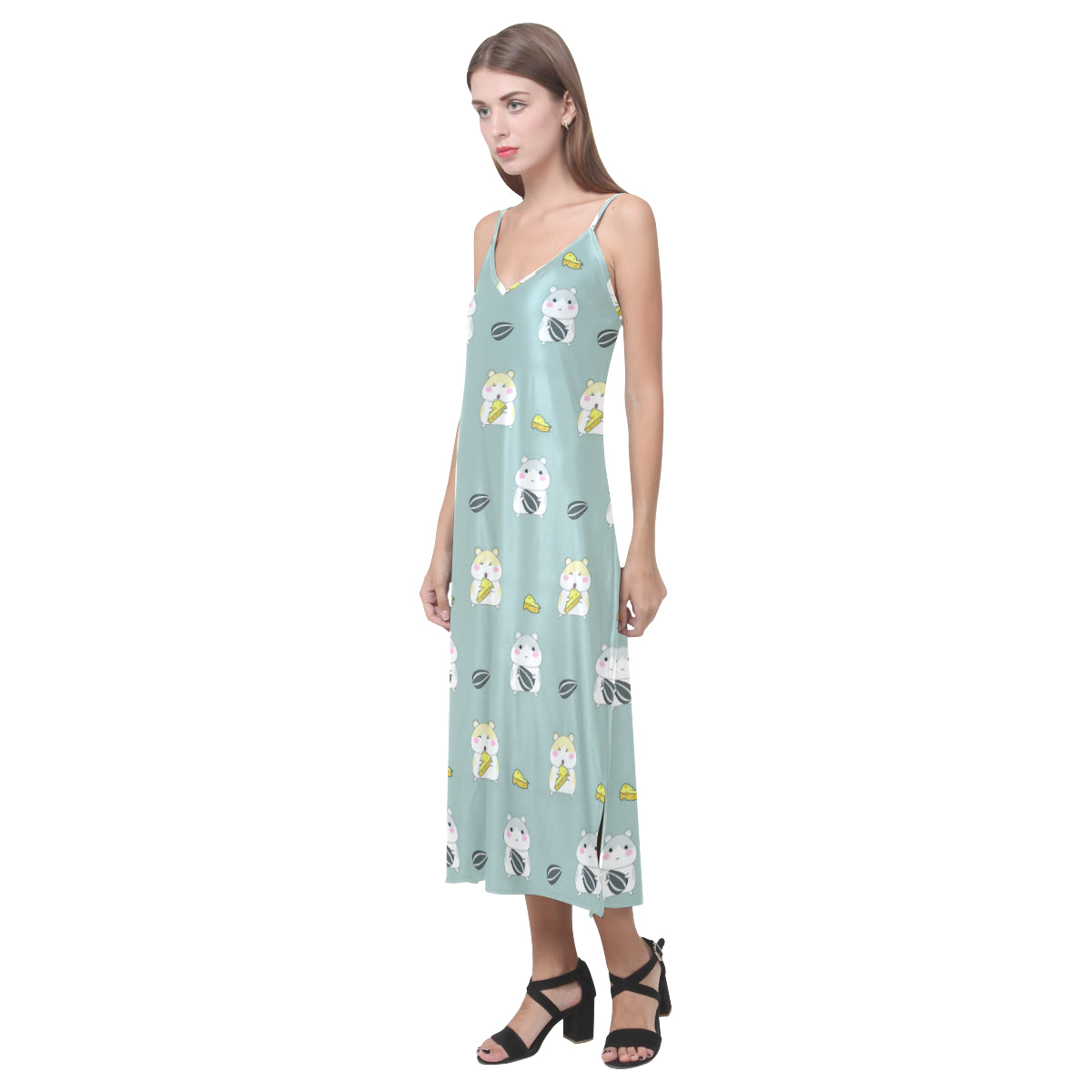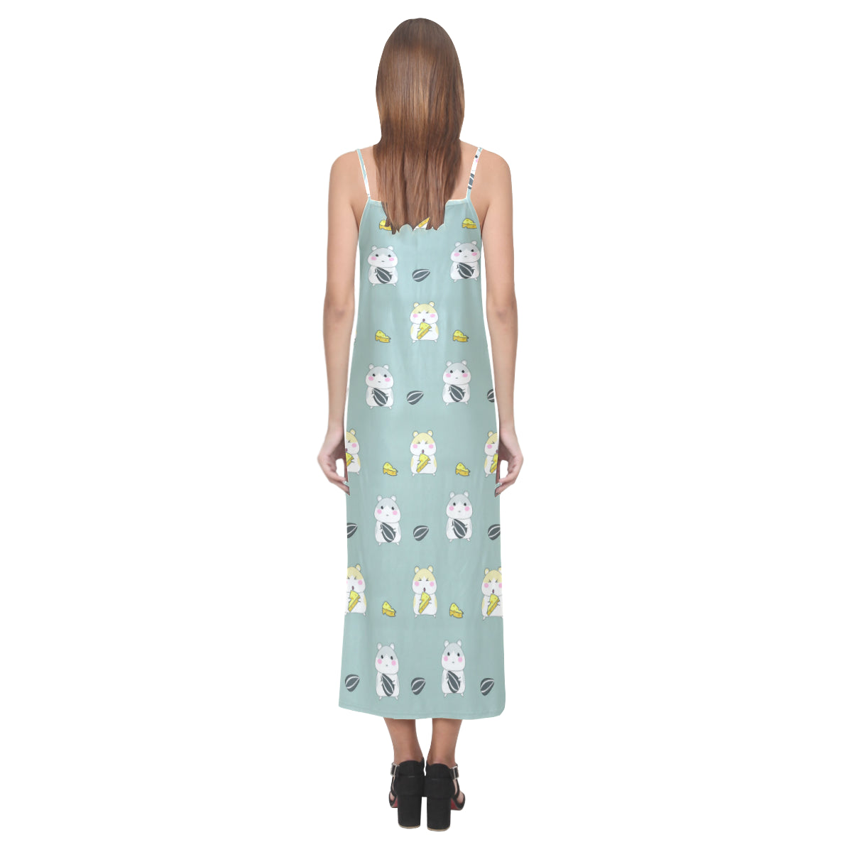 Cute hamster cheese pattern V-Neck Open Fork Long Dress