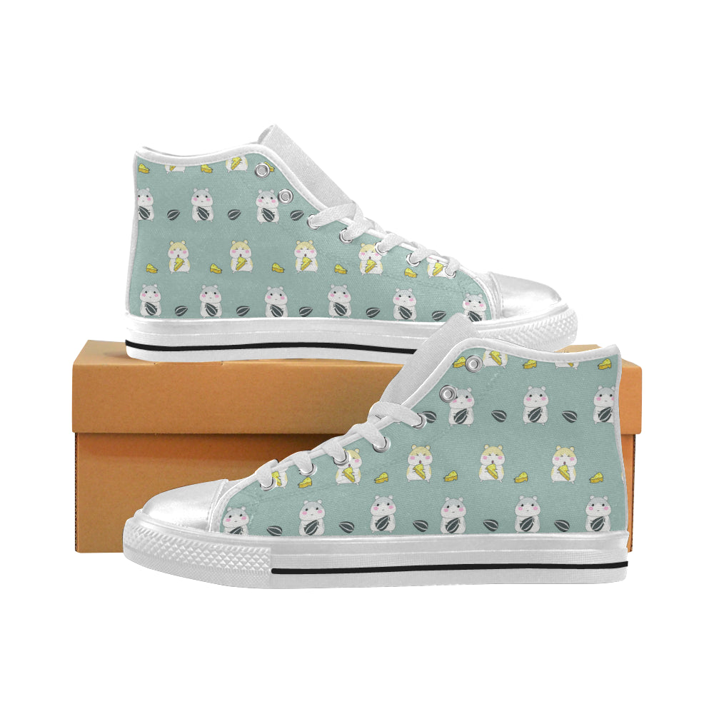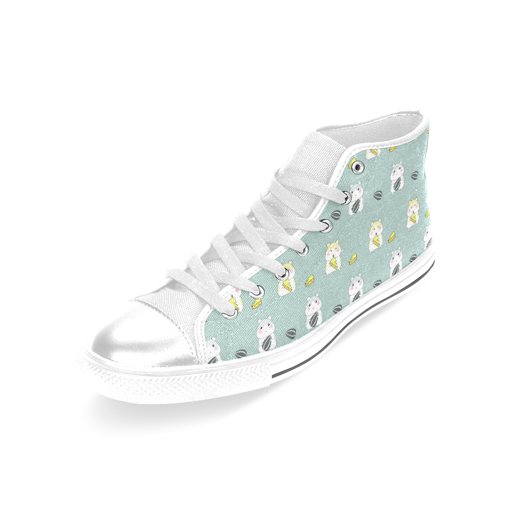 Cute hamster cheese pattern Women's High Top Canvas Shoes White