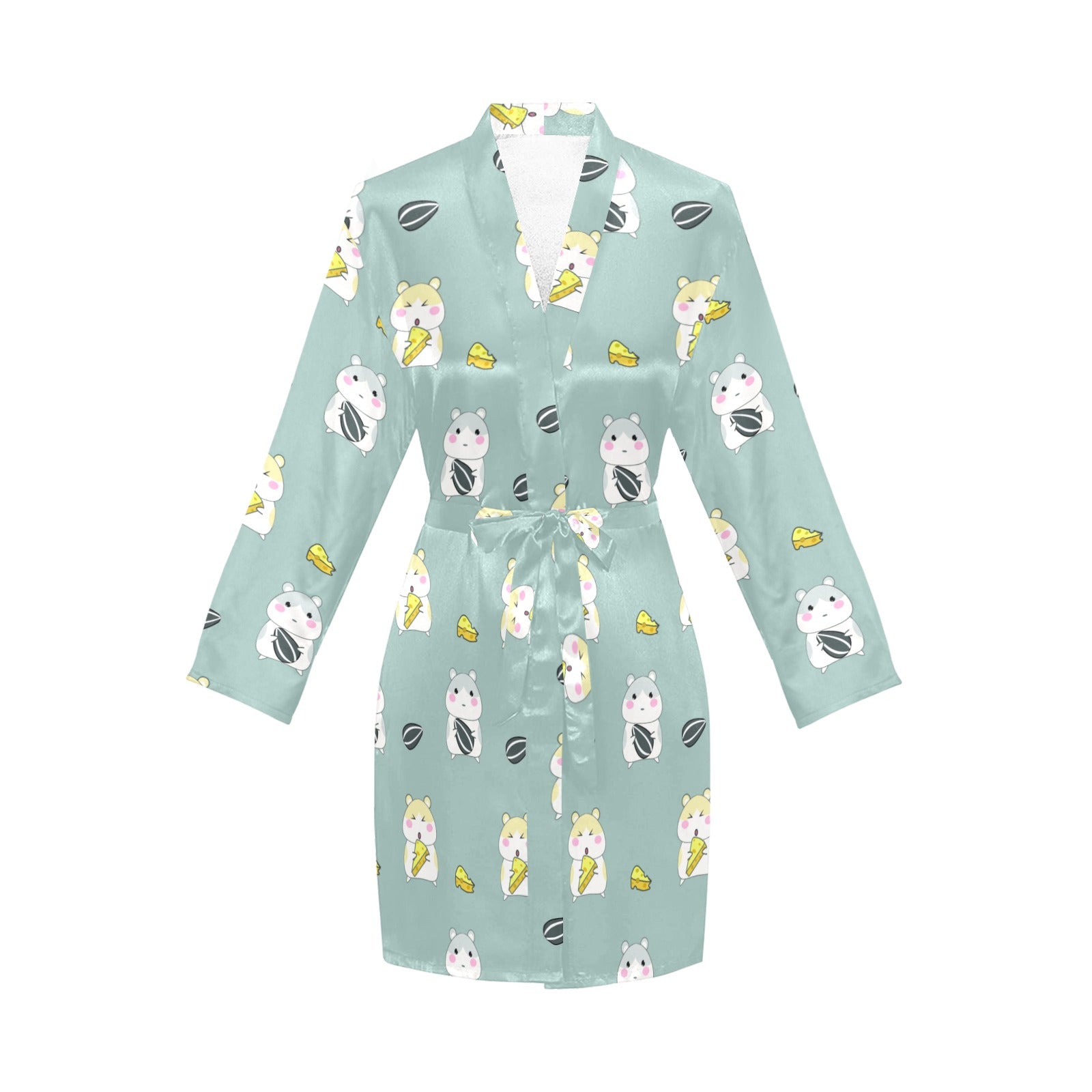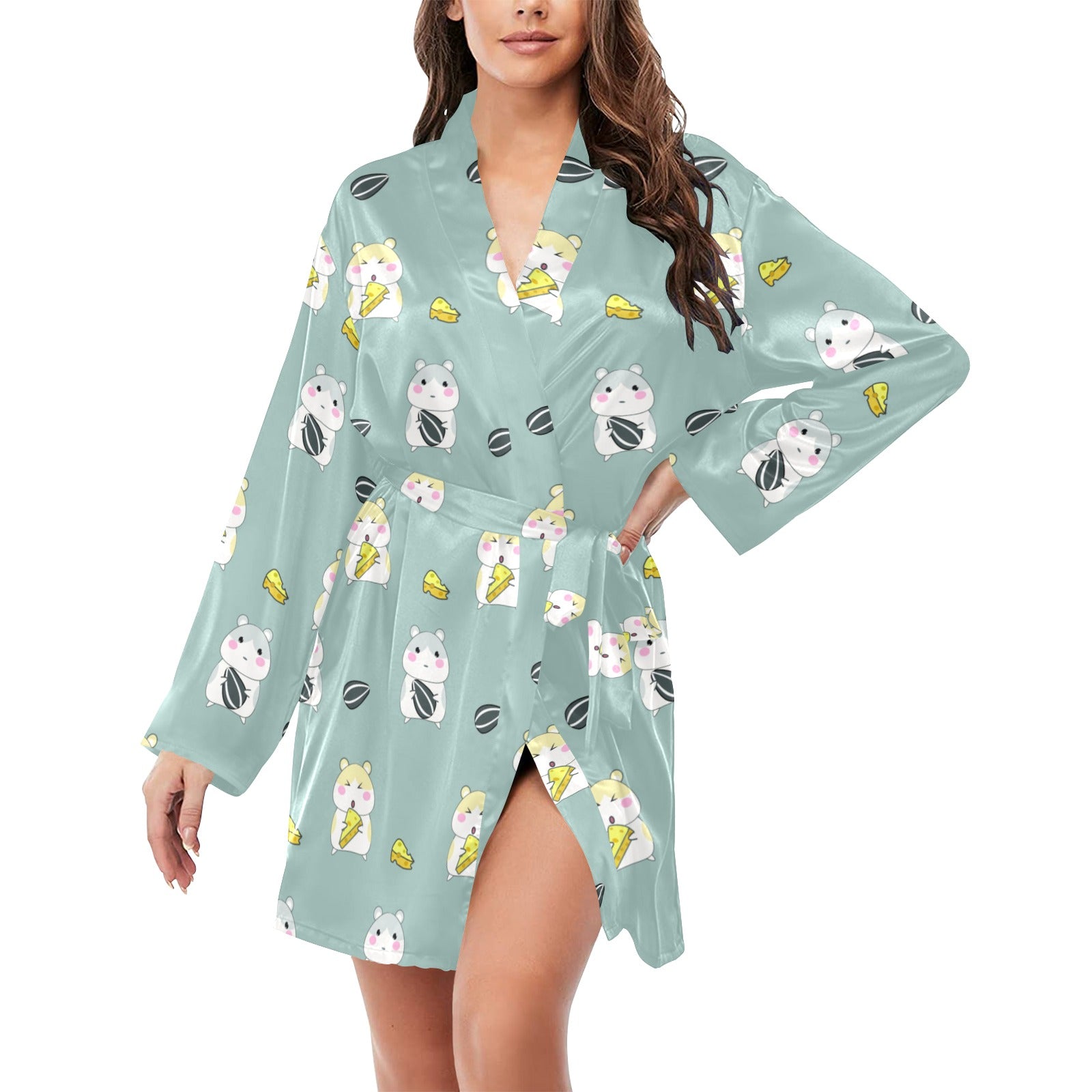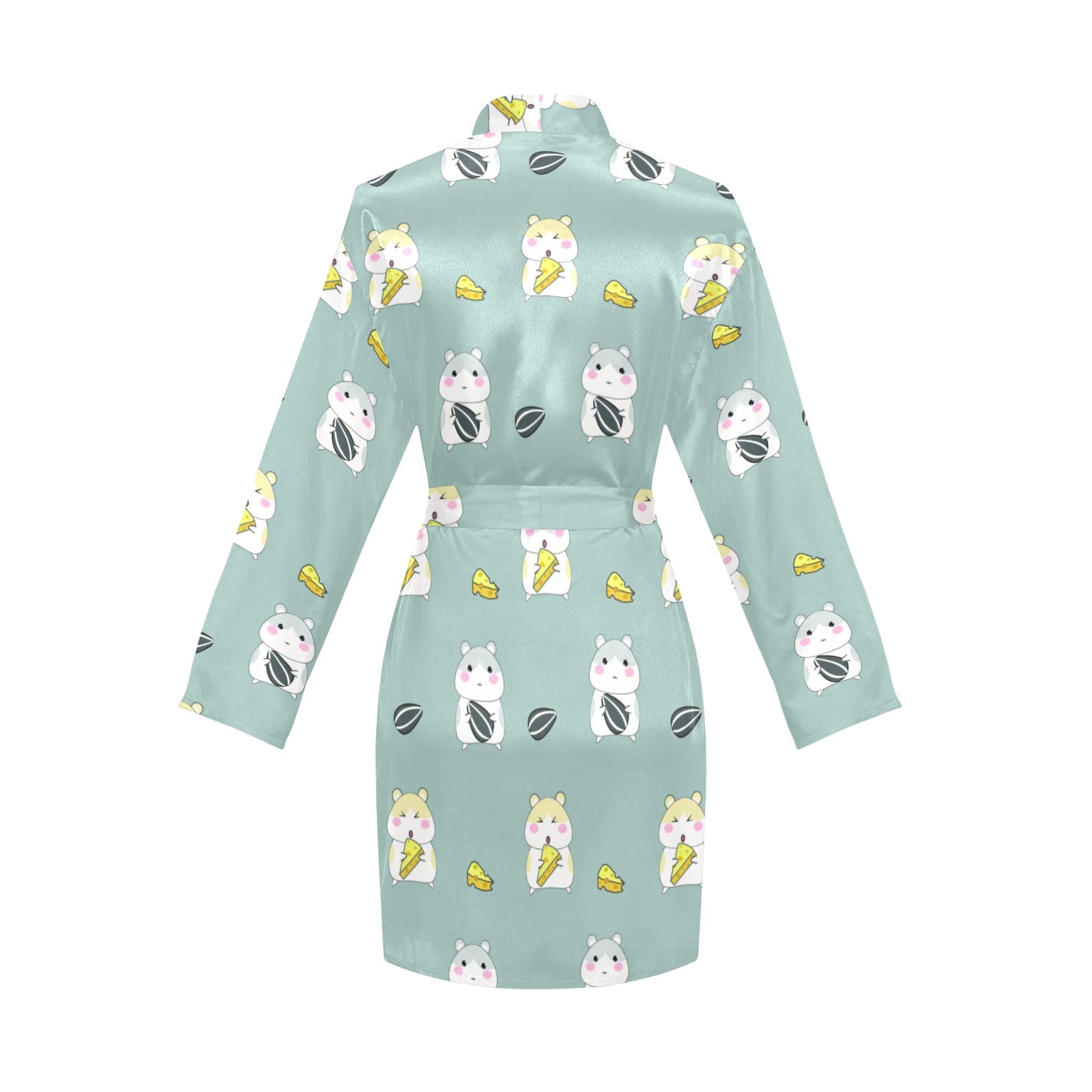 Cute hamster cheese pattern Women's Long Sleeve Belted Night Robe