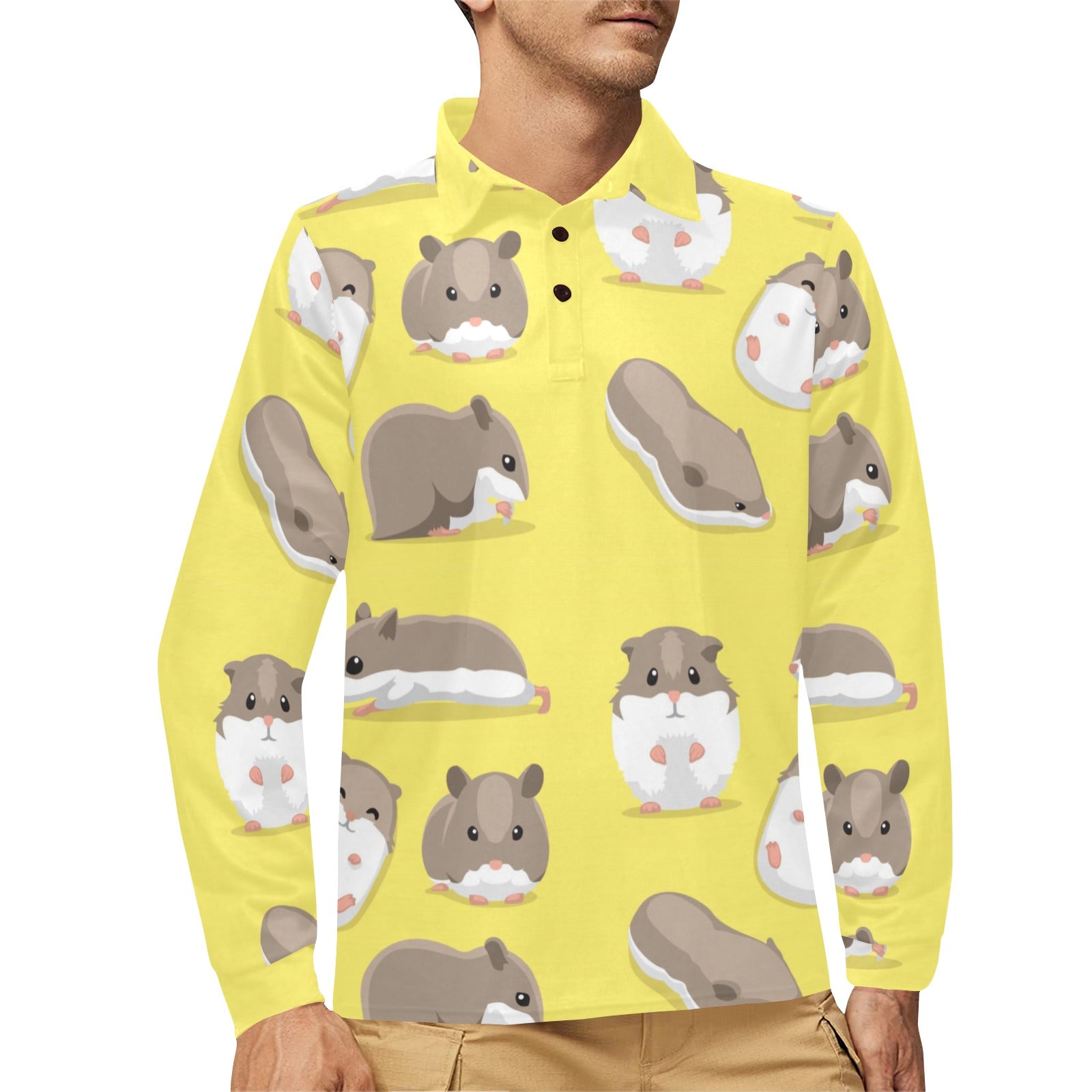 Cute Hamster pattern Men's Long Sleeve Polo Shirt