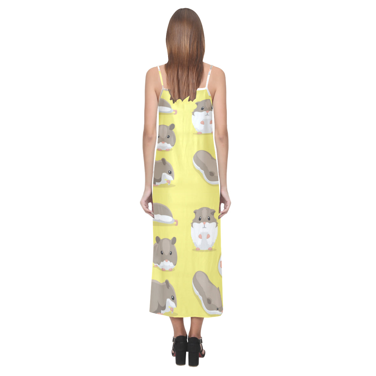Cute Hamster pattern V-Neck Open Fork Long Dress is a uniqued design and limited item. It made to order, hand printed, and sewn with love in our factory.
