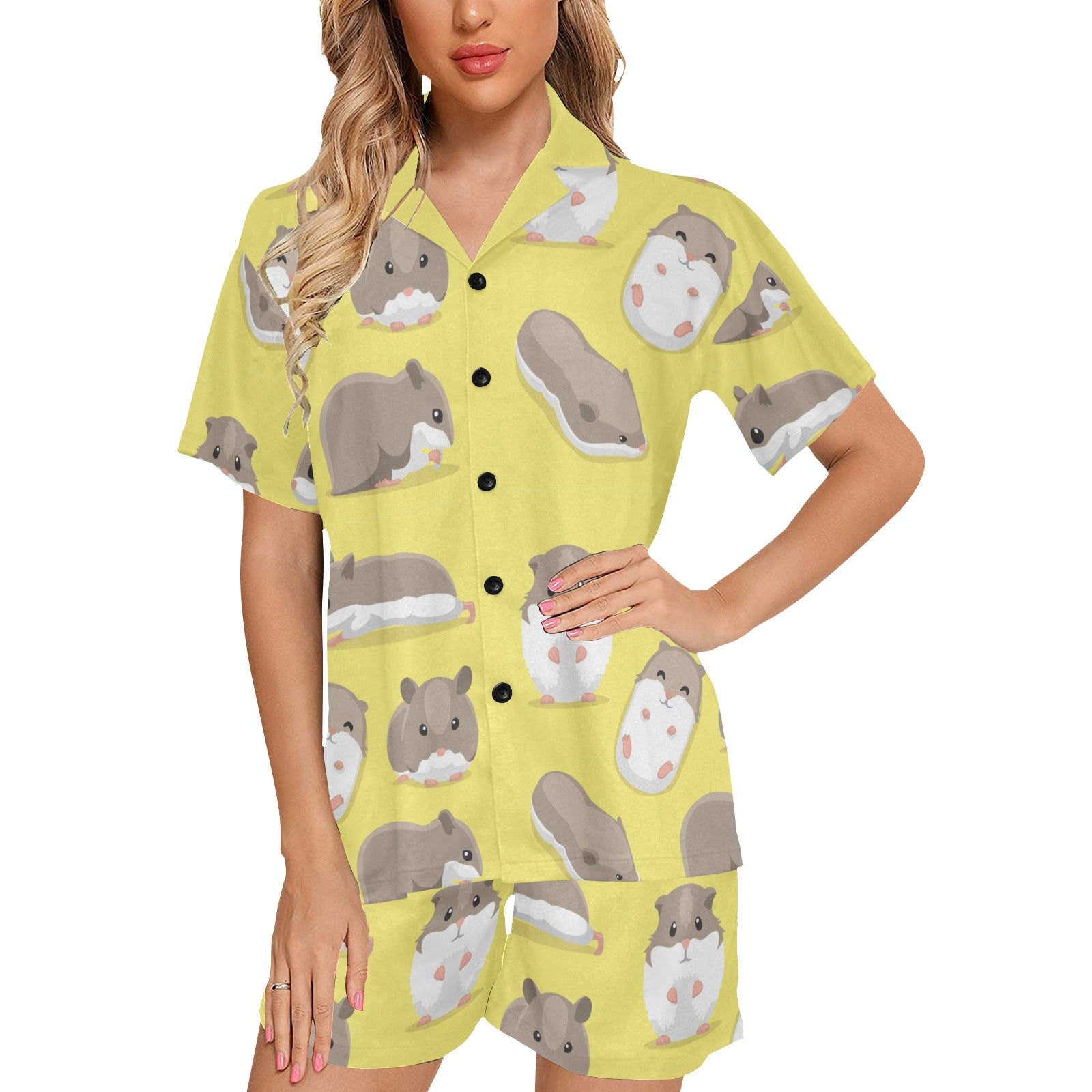Cute Hamster pattern Women's V-Neck Short Pajama Set