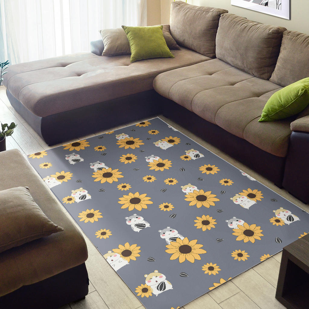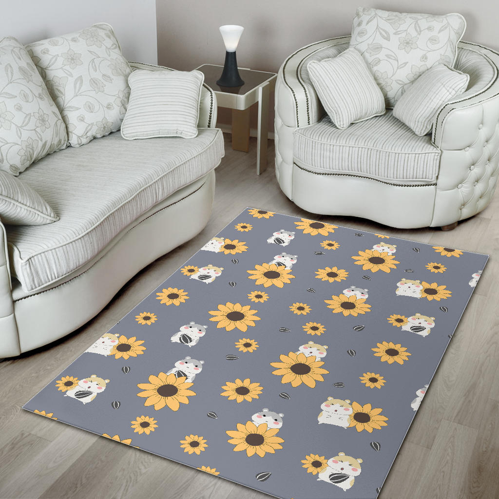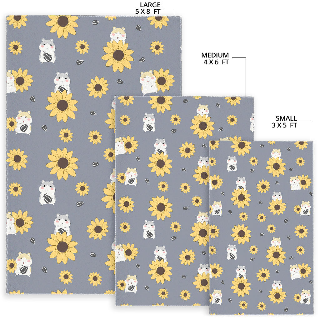 Cute hamster sunflower pattern background Area Rug is a uniqued design and limited item. It made to order, hand printed, and sewn with love in our factory.