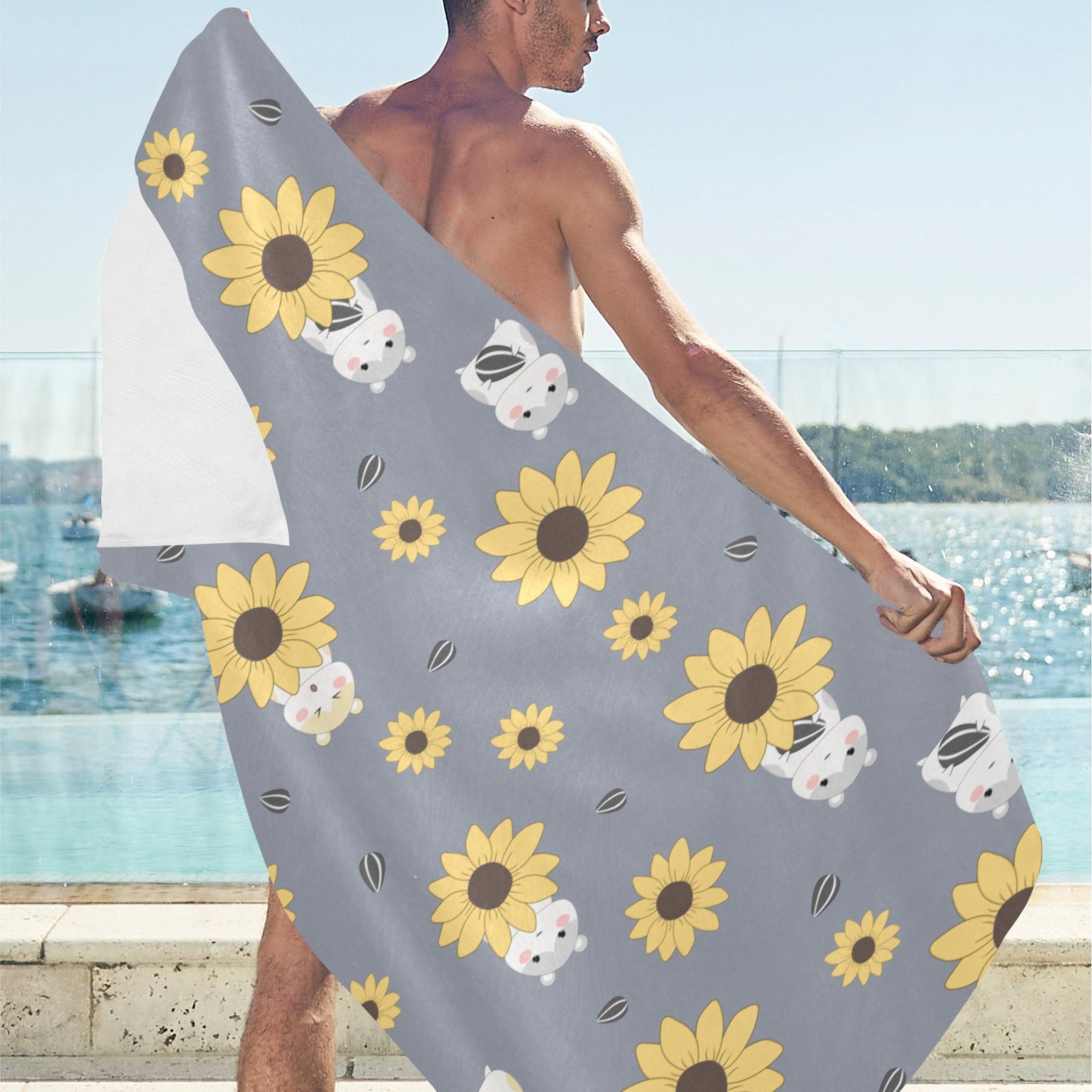 Cute hamster sunflower pattern background Beach Towel
