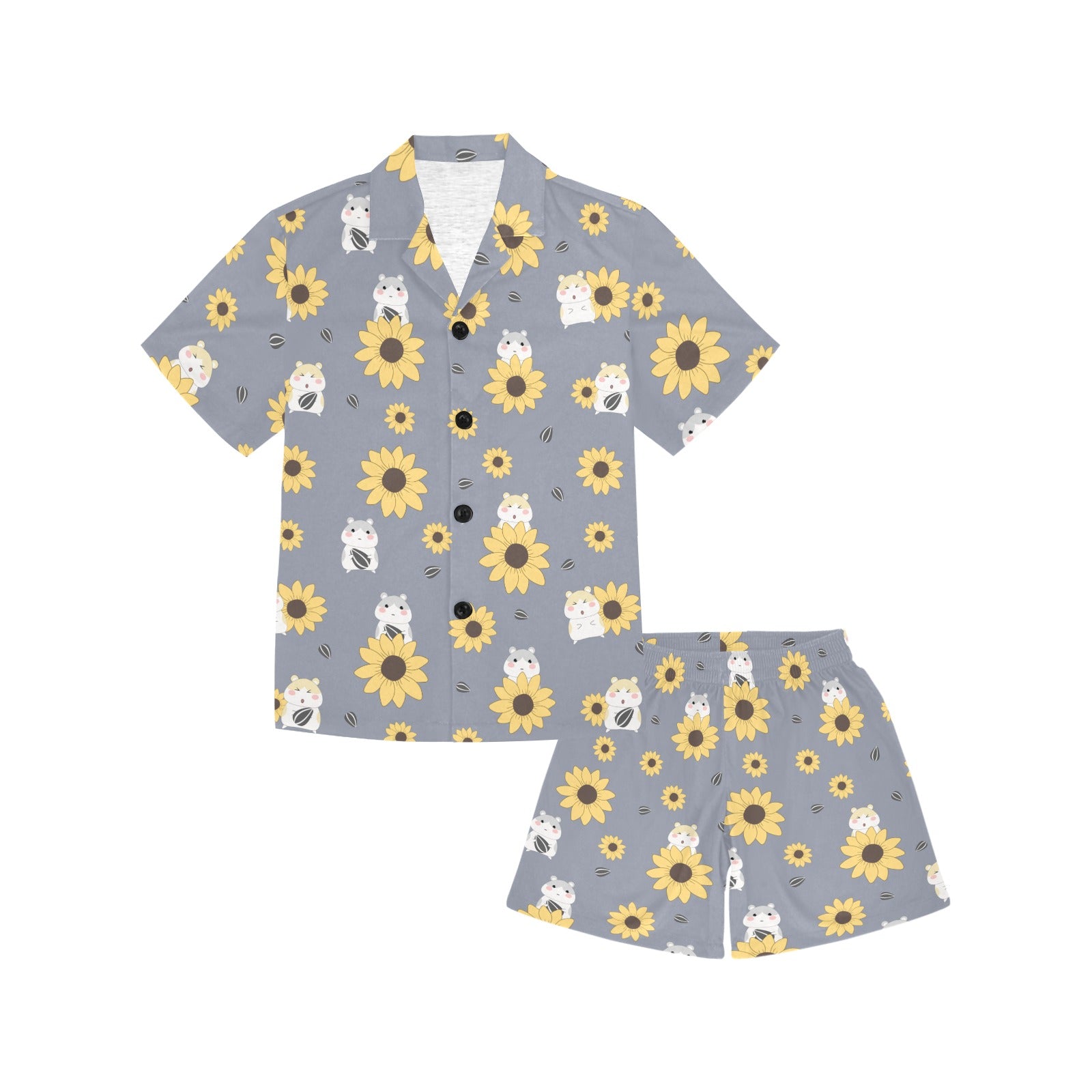 Cute hamster sunflower pattern background Kids' Boys' Girls' V-Neck Short Pajama Set