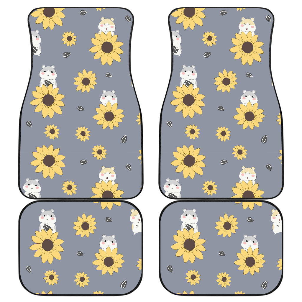 Cute Hamster Sunflower Pattern Background Front And Back Car Mats