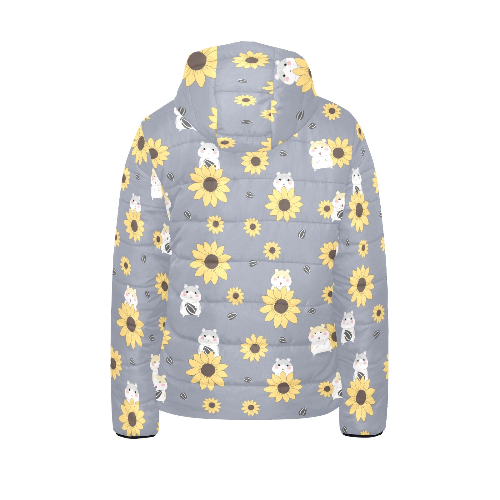 Cute hamster sunflower pattern background Kids' Boys' Girls' Padded Hooded Jacket