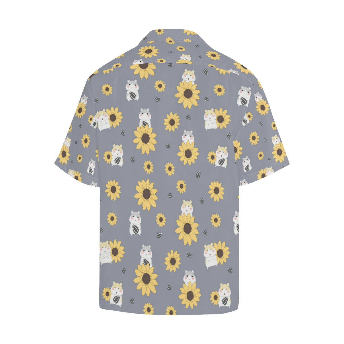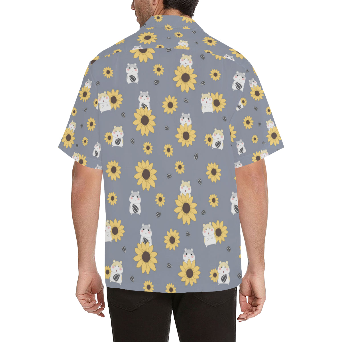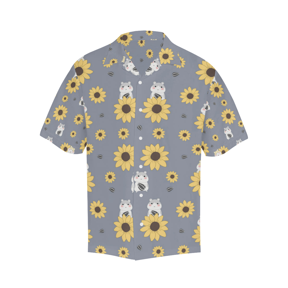 Cute hamster sunflower pattern background Men's All Over Print Hawaiian Shirt is a uniqued design and limited item. It made to order, hand printed, and sewn with love in our factory.