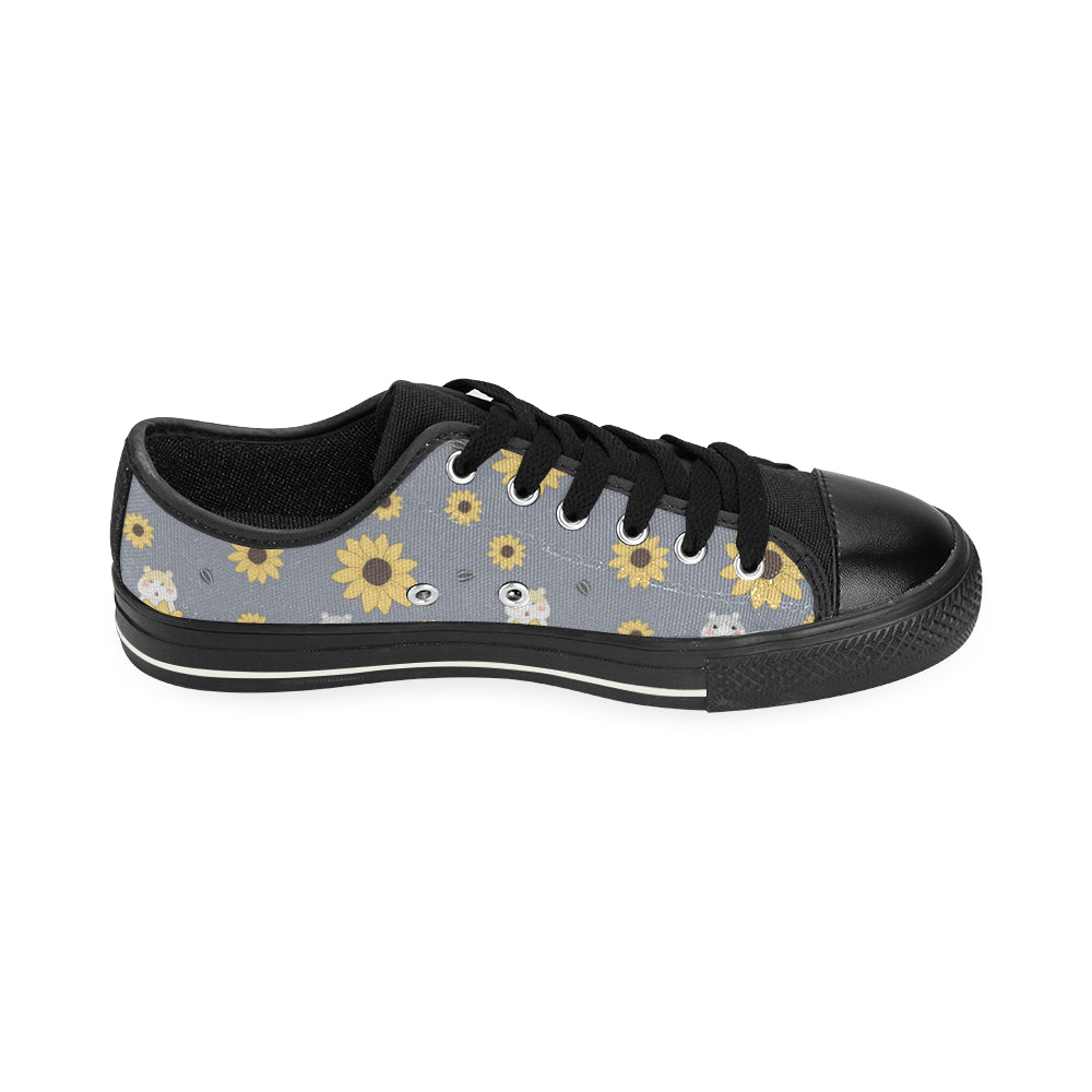 Cute hamster sunflower pattern background Men's Low Top Canvas Shoes Black