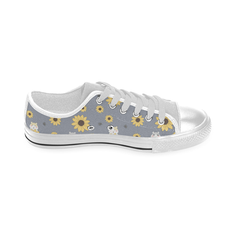 Cute hamster sunflower pattern background Men's Low Top Canvas Shoes White
