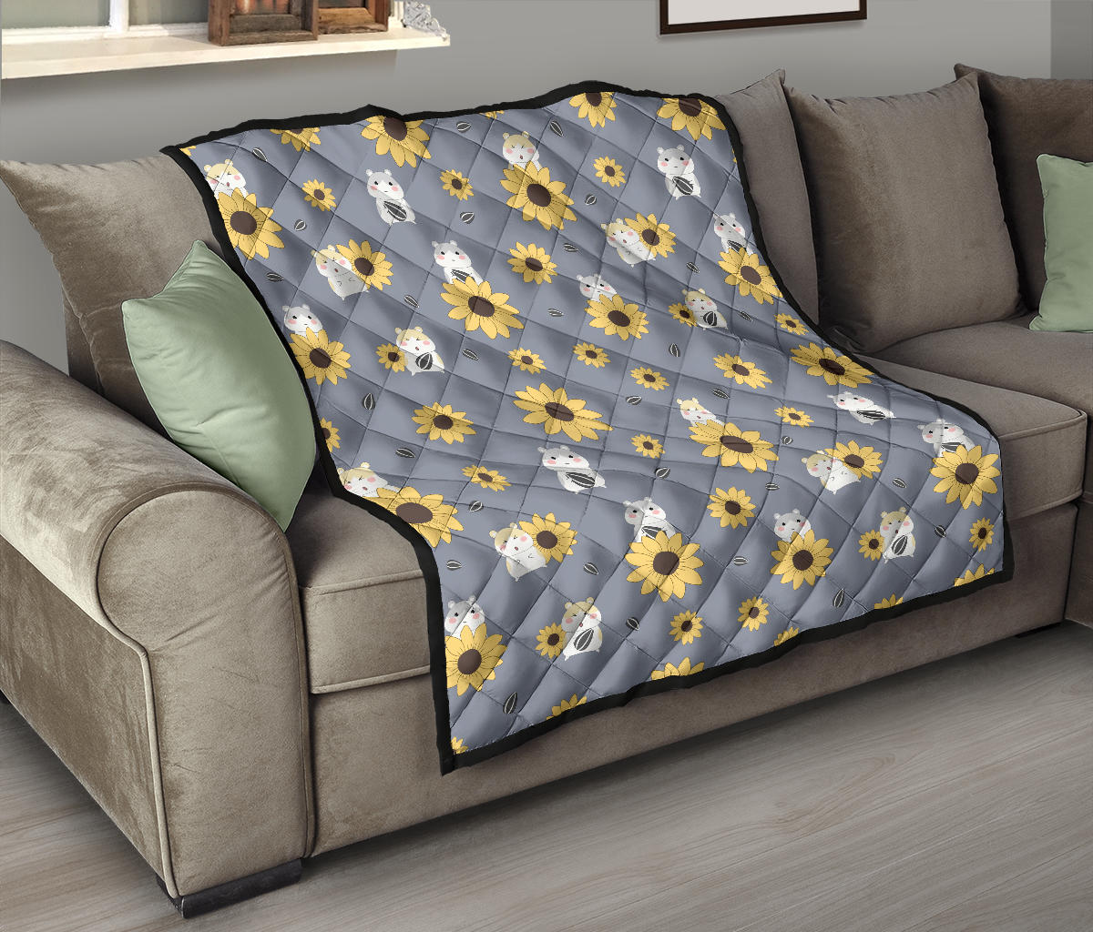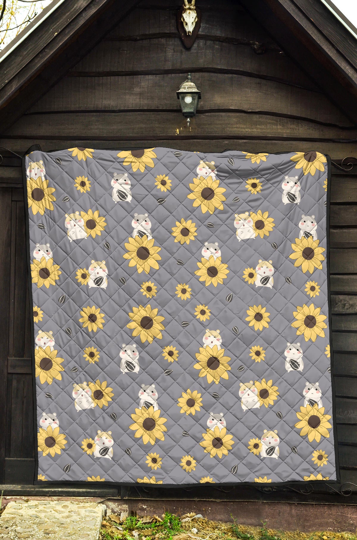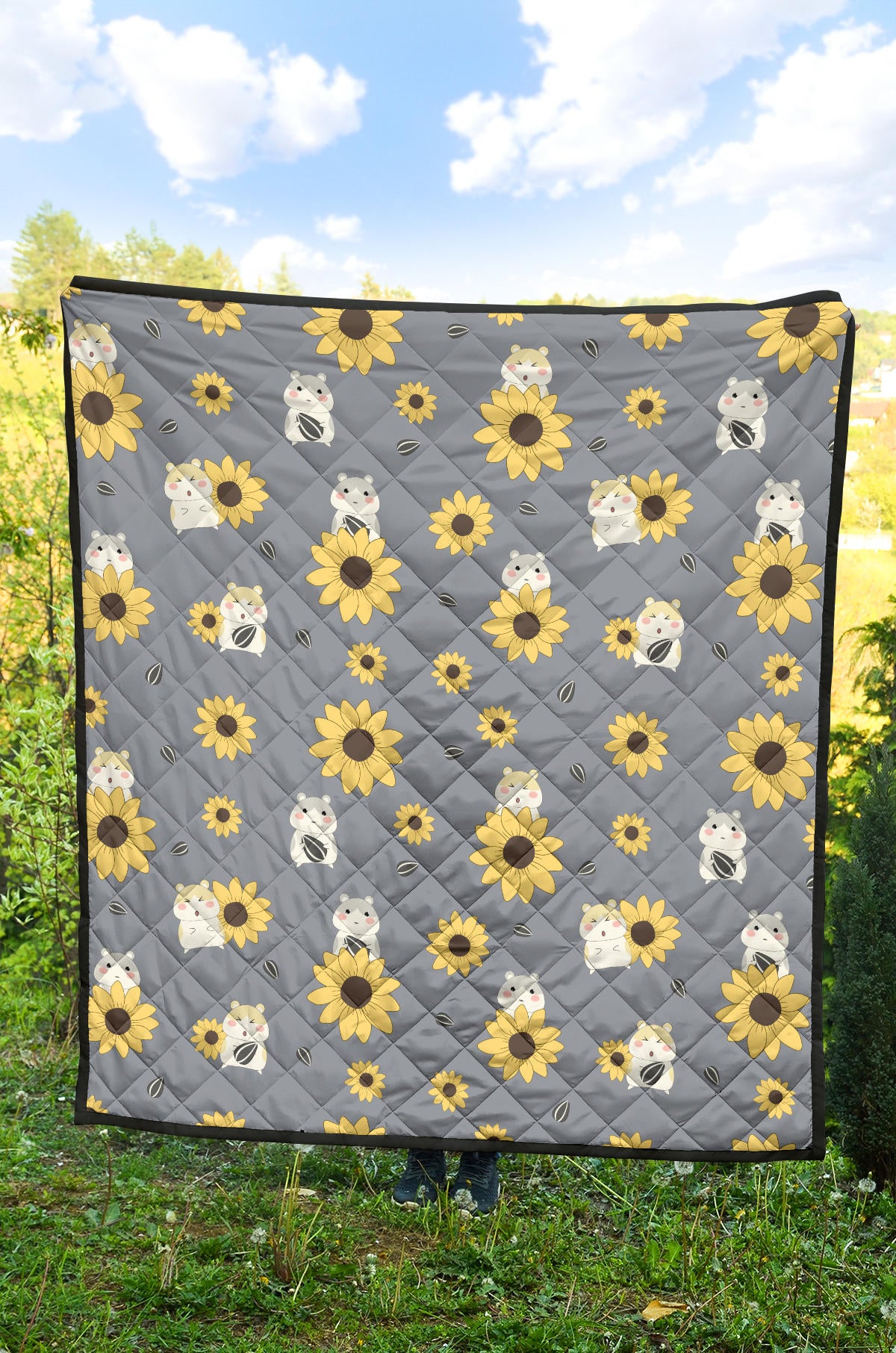 Cute Hamster Sunflower Pattern Background Premium Quilt is a uniqued design and limited item. It made to order, hand printed, and sewn with love in our factory.