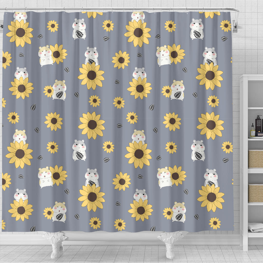Cute Hamster Sunflower Pattern Background Shower Curtain Fulfilled In US